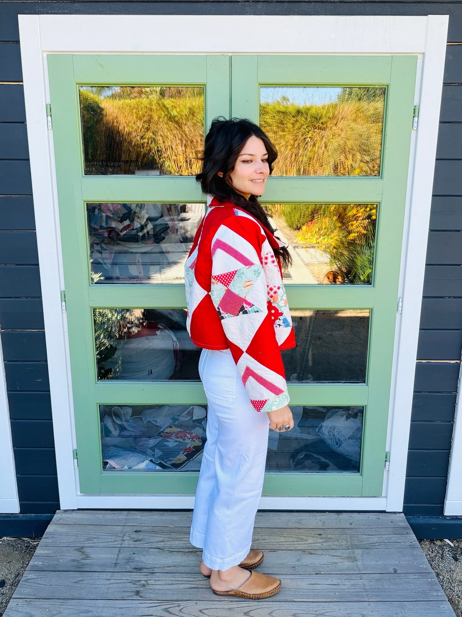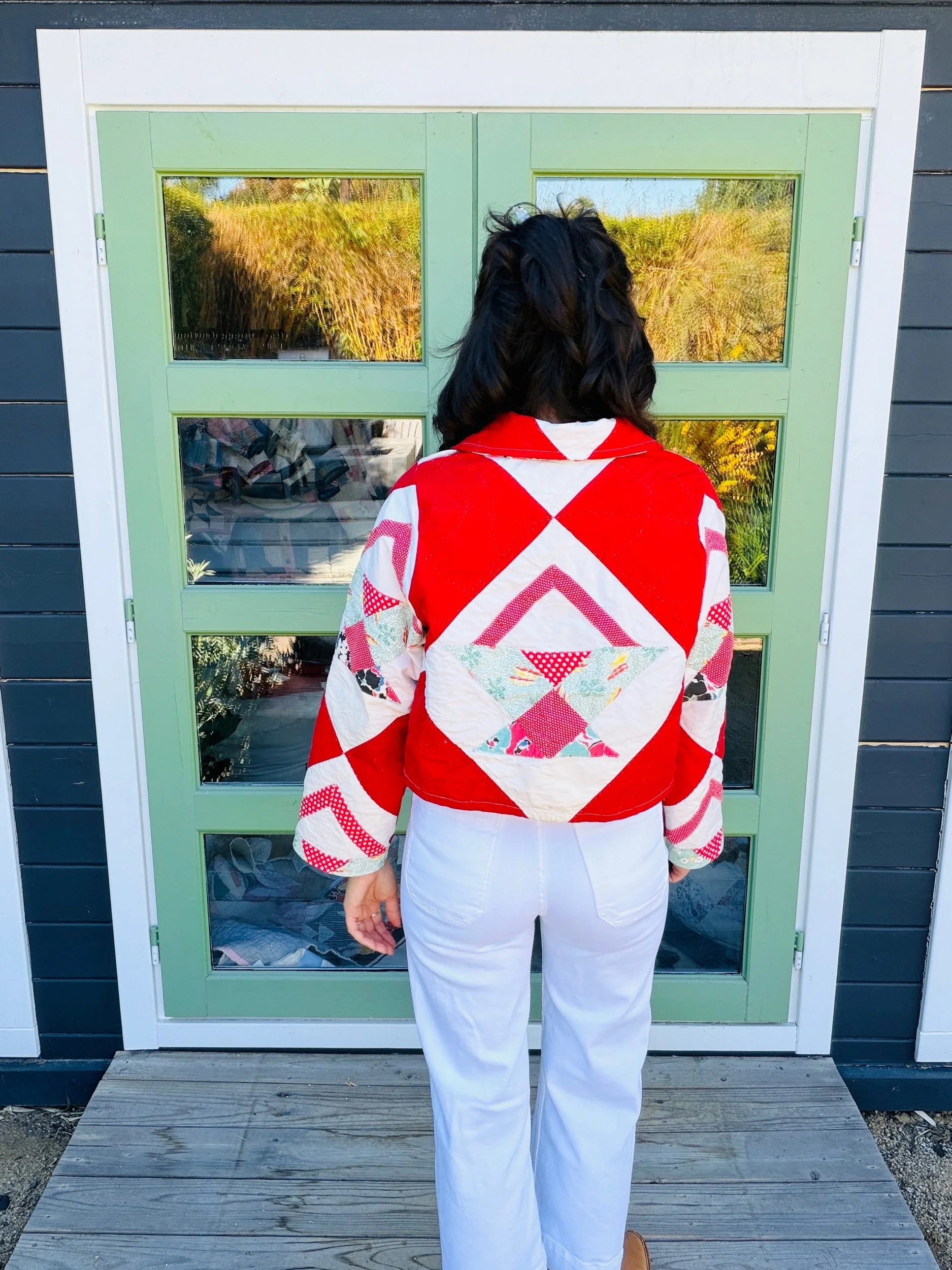 This one-of-a-kind handmade quilted chore coat is thoughtfully sewn for everyday wear, blending classic workwear with heirloom textiles. Made by Milk Thistle Sewing, each coat is crafted using reclaimed vintage quilt materials, giving new life to well-loved fabrics and ensuring no two pieces are ever the same.