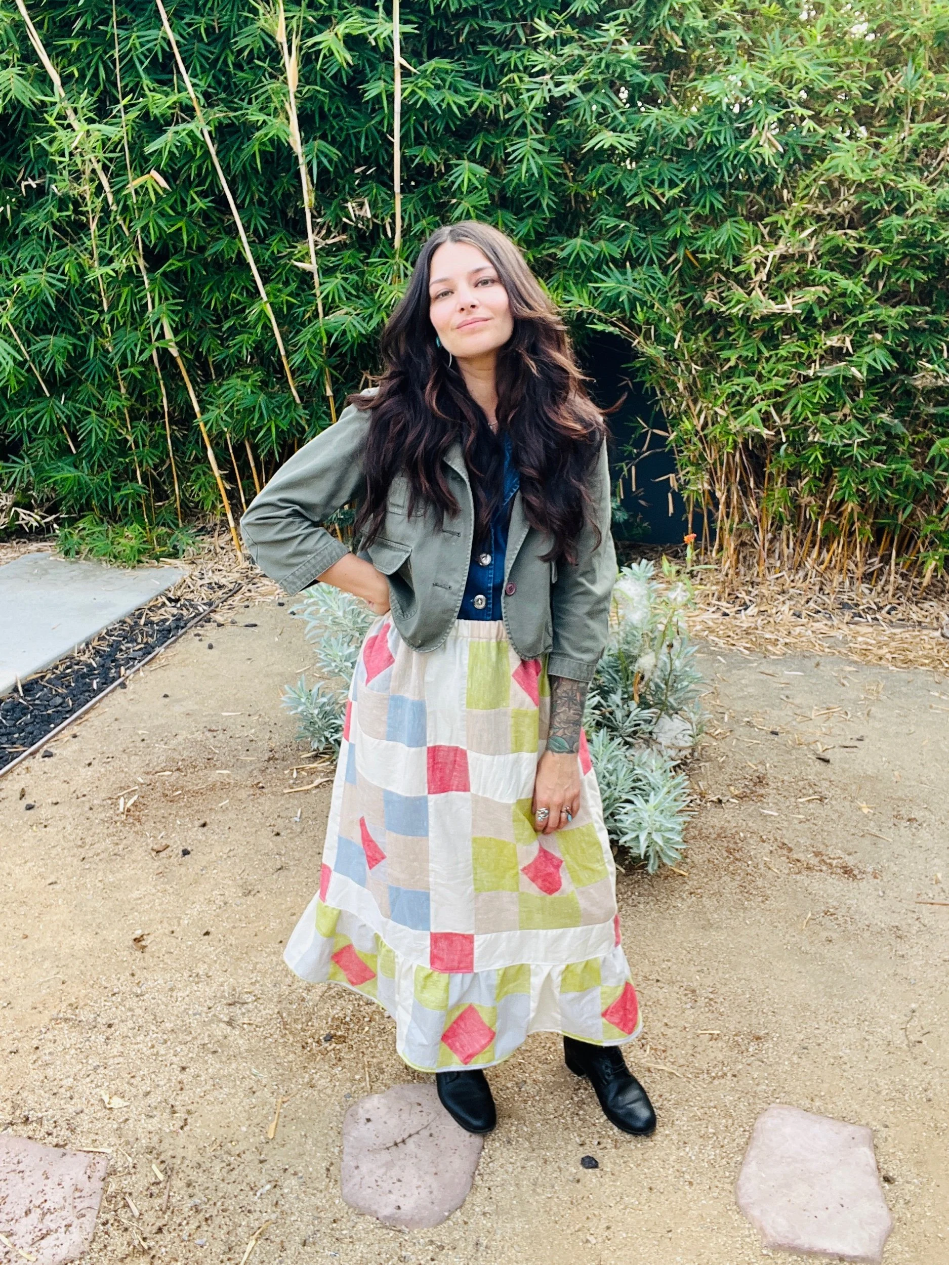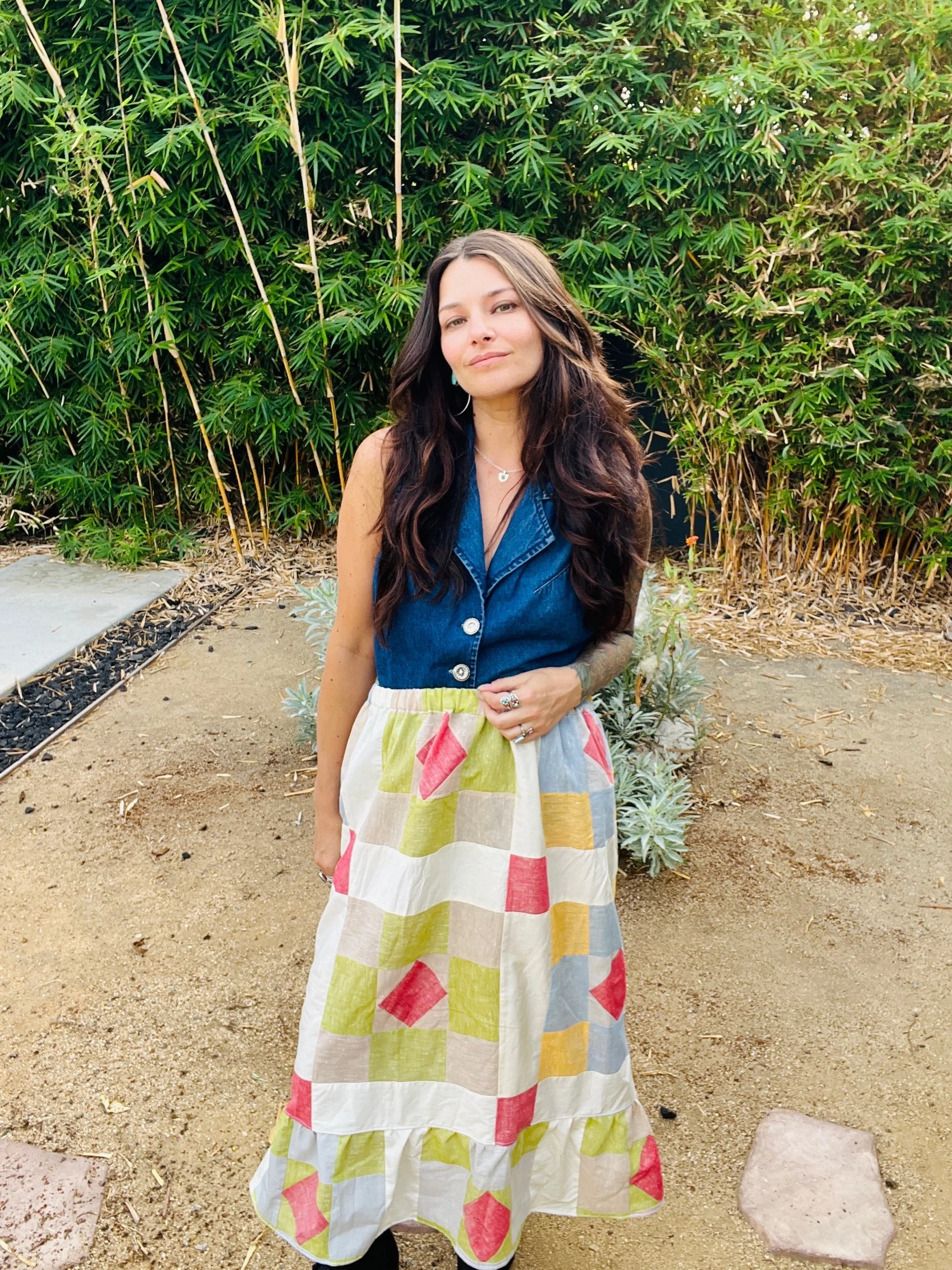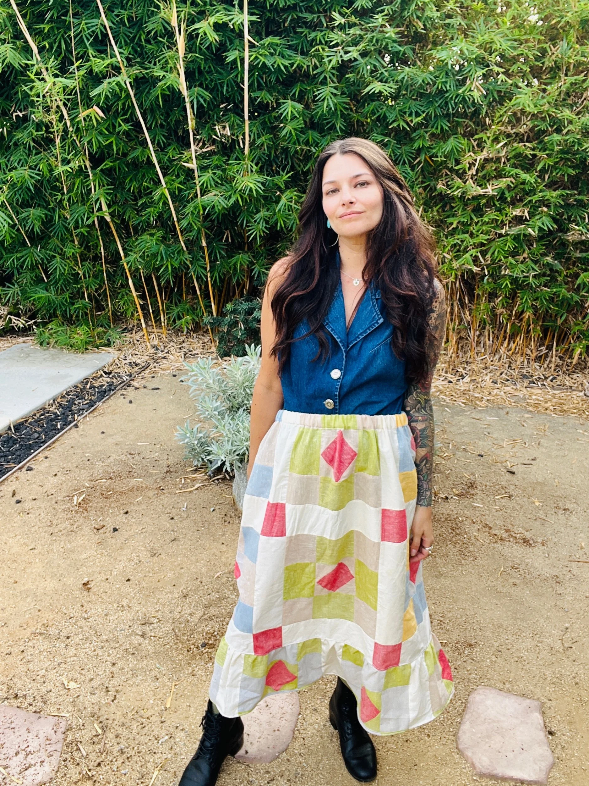 I have two versions of this skirt listed. this one is a little cheaper because the lines aren’t straight near the top front as you ca see in the photos but it’s still very cute.