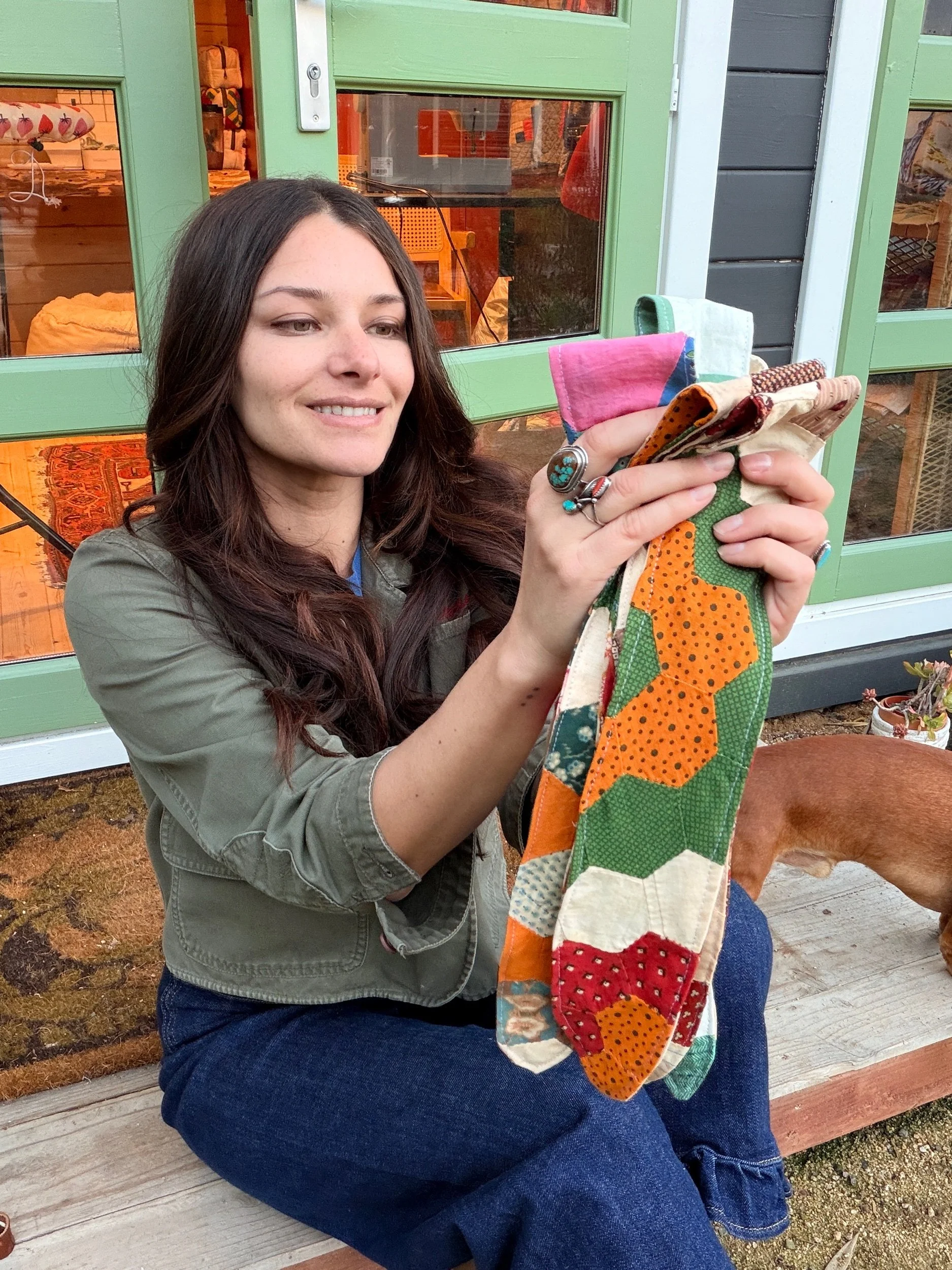 These handmade quilt bandana wraps are one of a kind and a great addition for any outfit! This bandana is from a 1800’s grandmother’s flower quilt making it a historical piece that is the epitome of slow fashion.