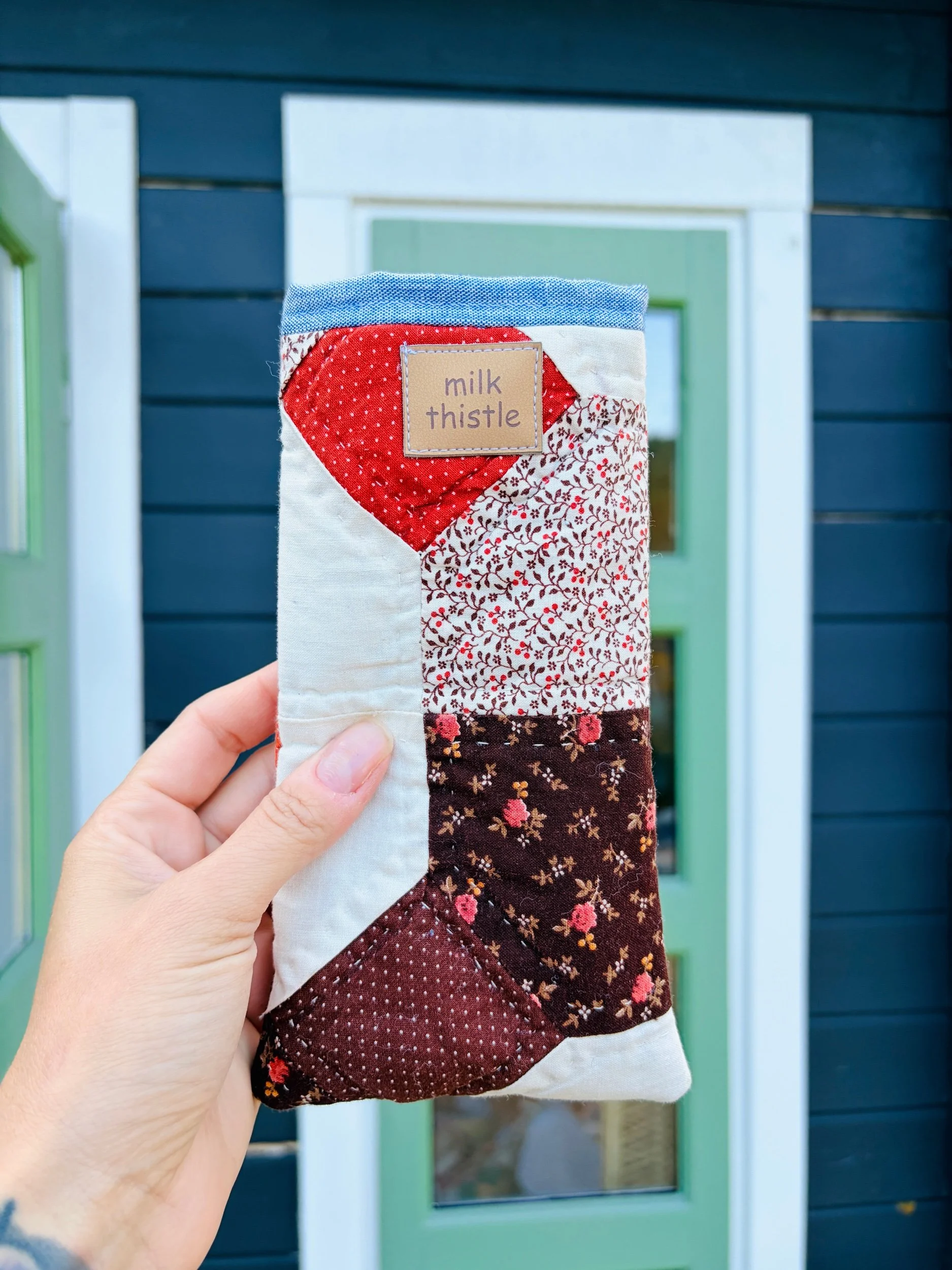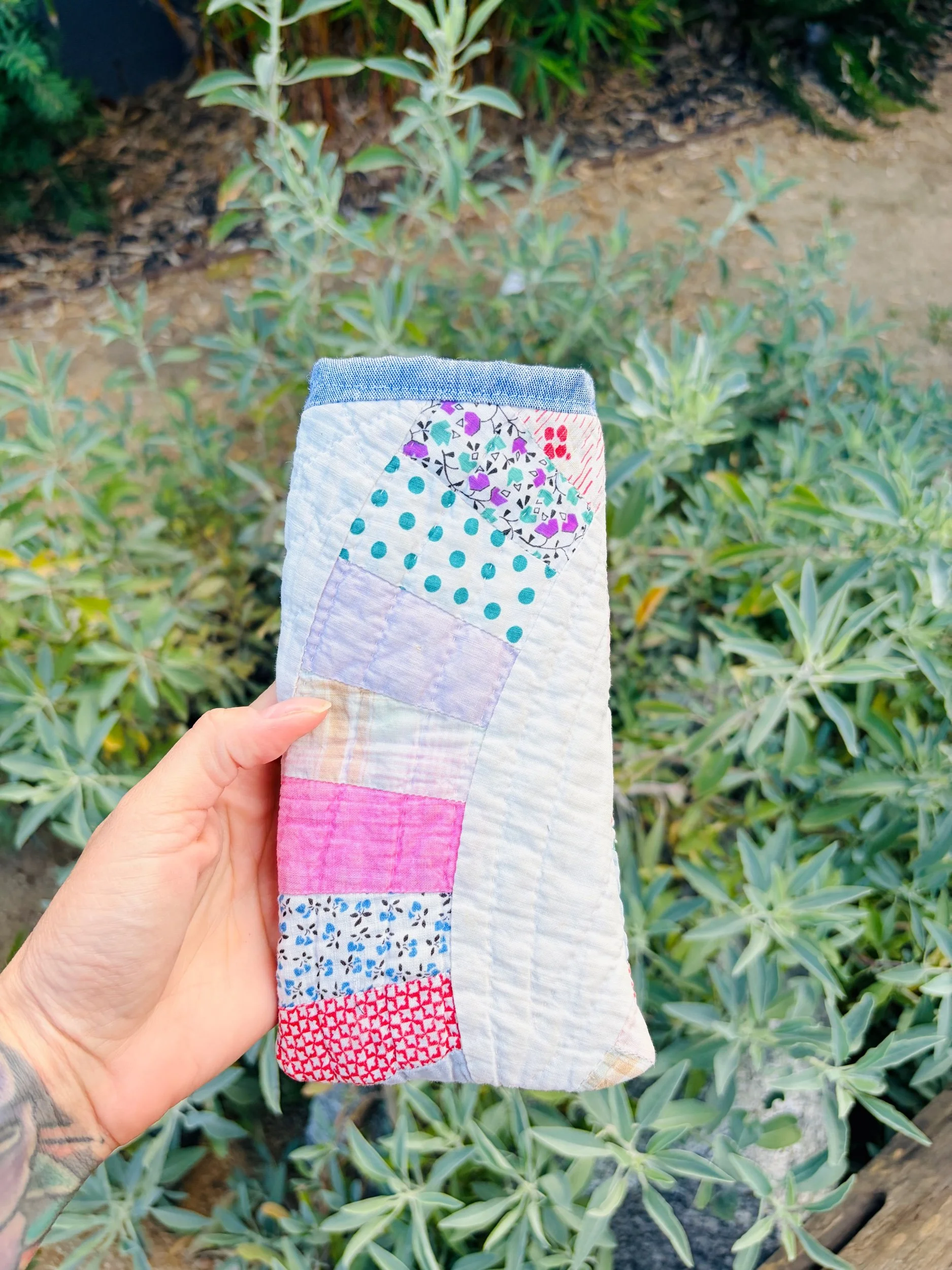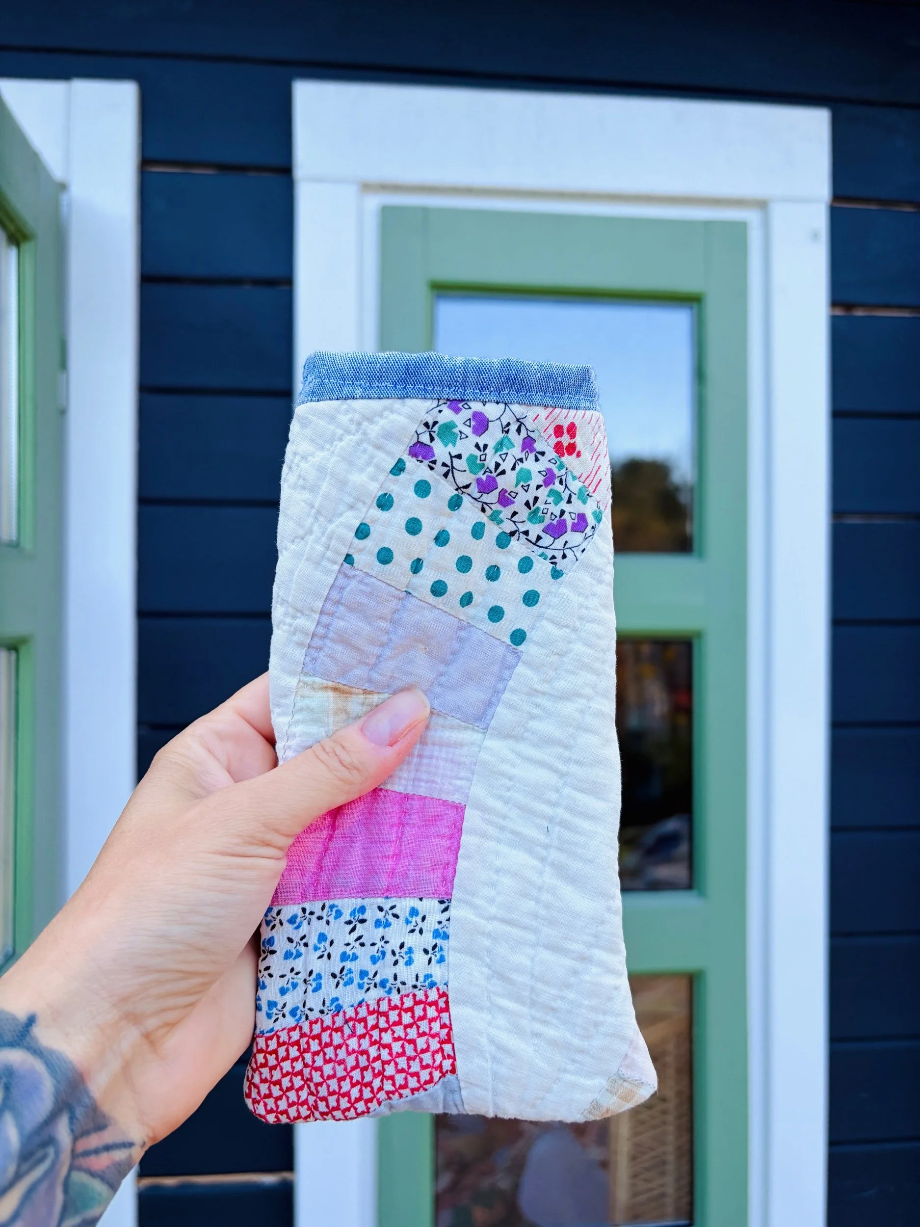 Protect your eyewear in style with our Handmade Vintage Quilt Sunglasses Case. Crafted from carefully selected vintage quilt fabric, each case showcases a unique patchwork design, ensuring that no two are alike.