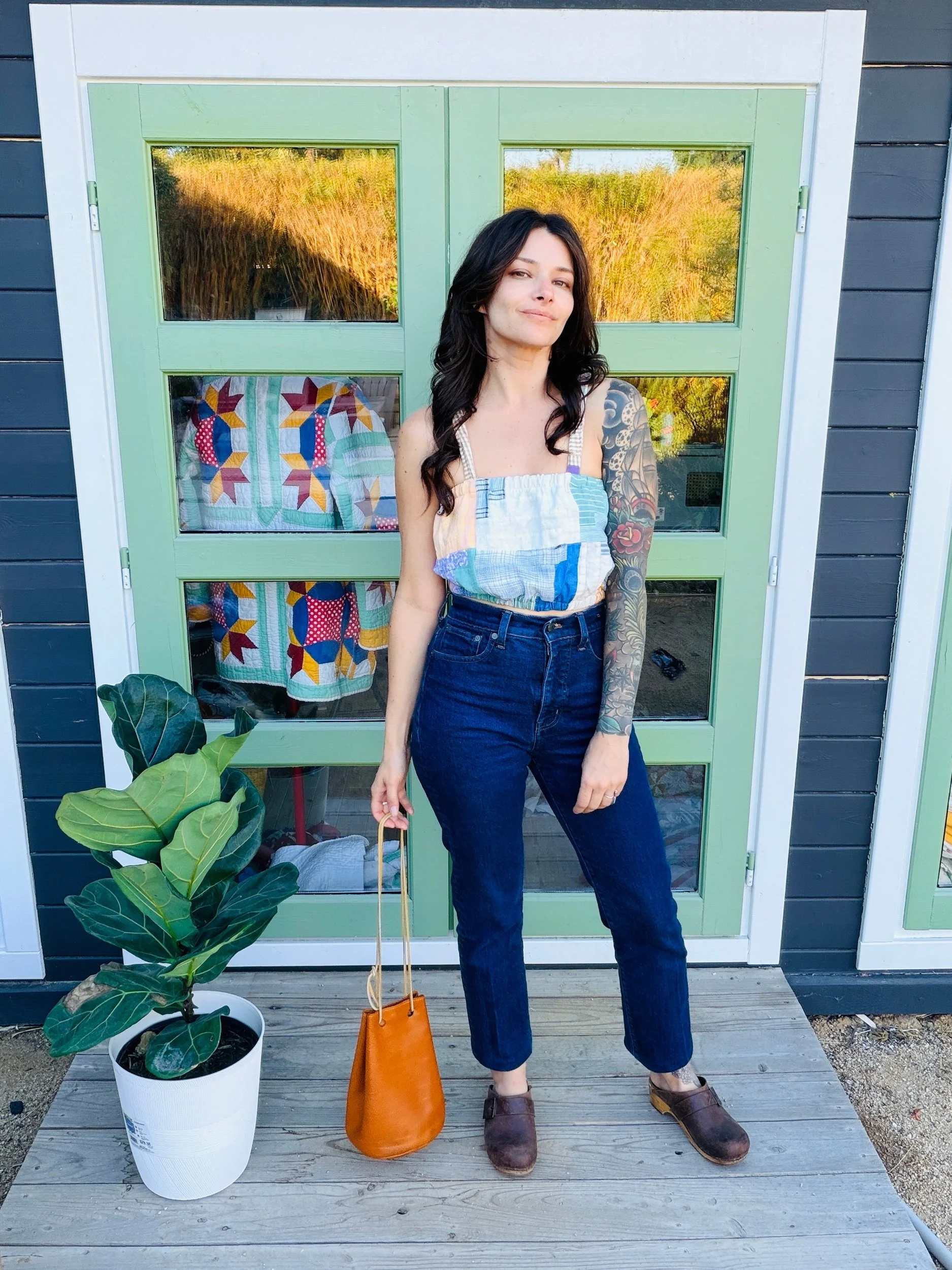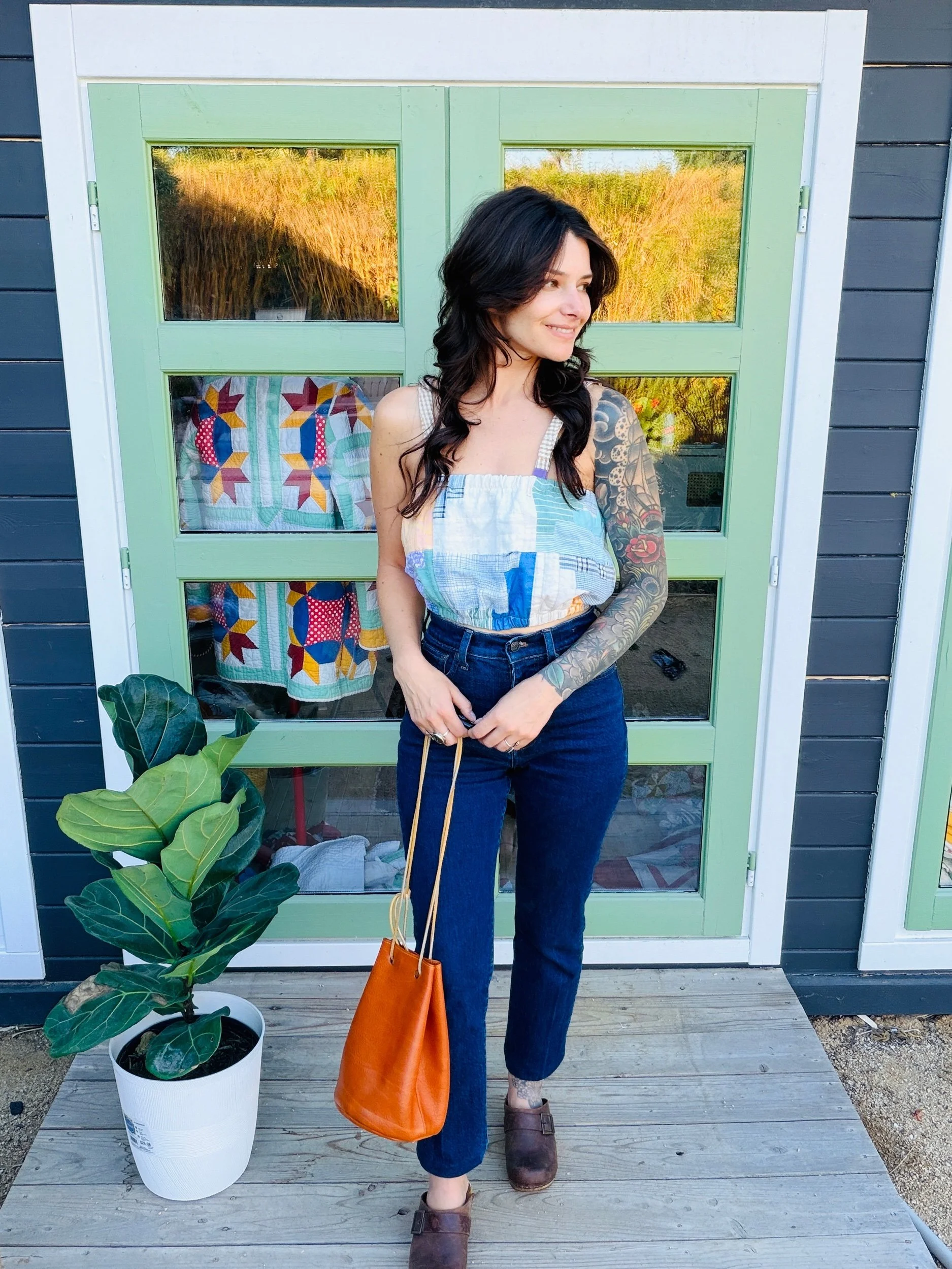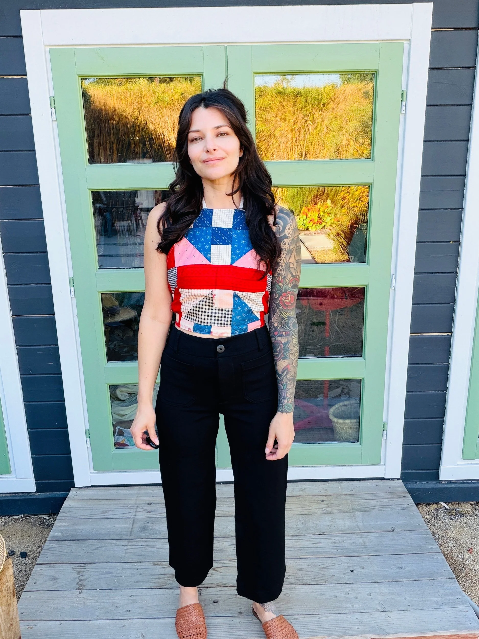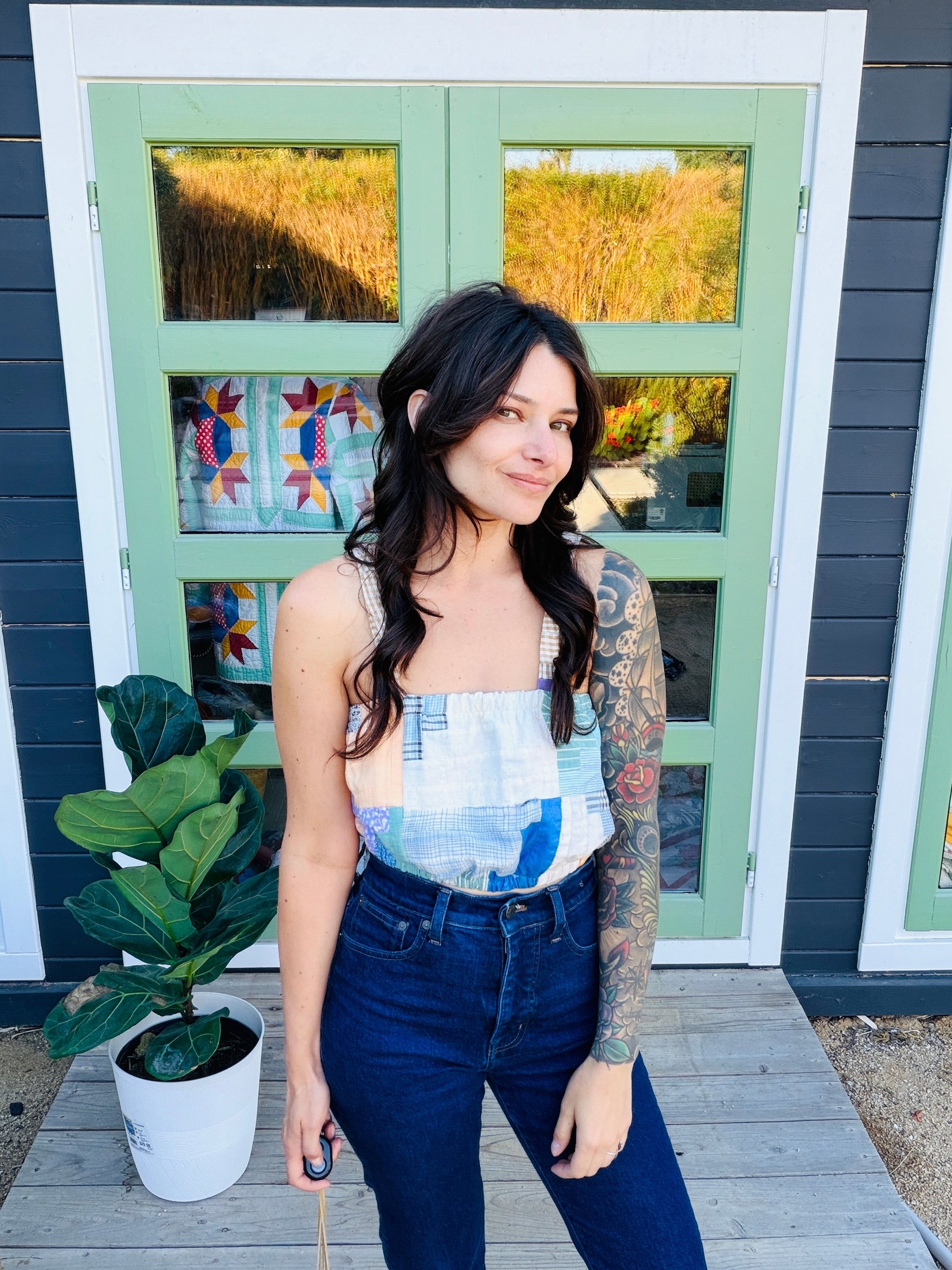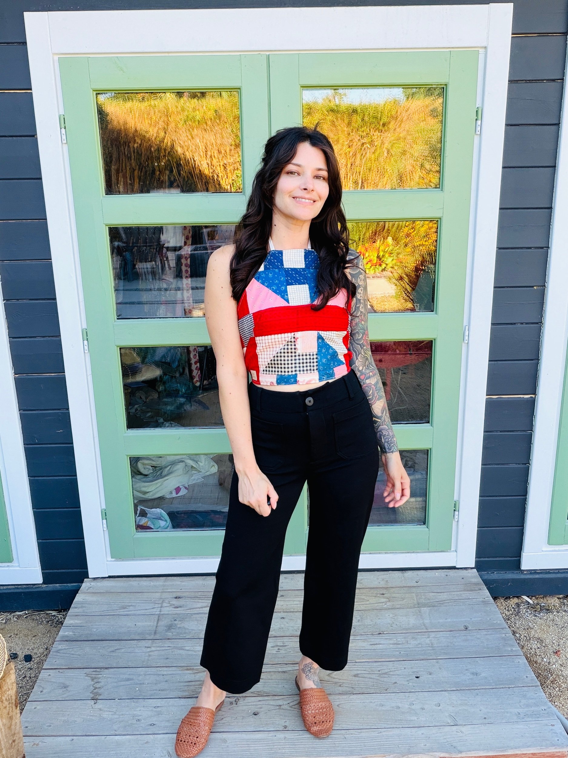 This handmade halter top is crafted from vintage quilt tops, giving new life to timeworn textiles and the hands that made them. Softly structured yet easy to wear, it’s lined with breathable linen for comfort against the skin.