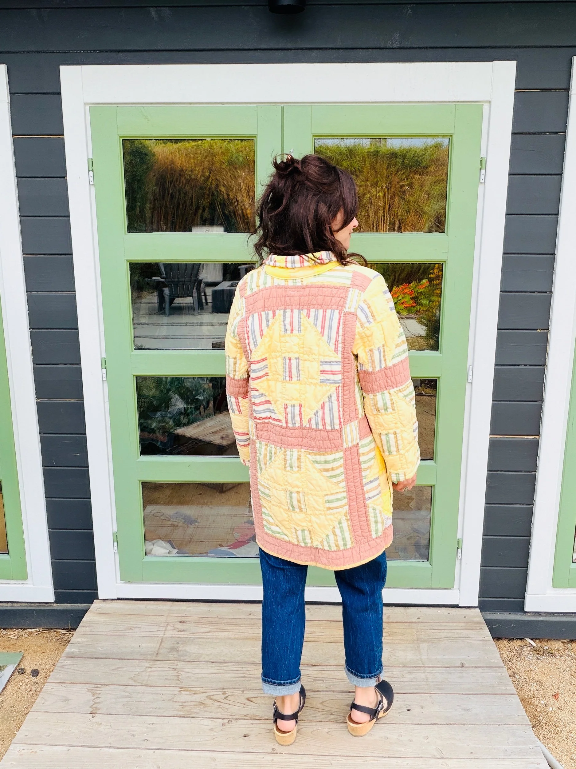 A true heirloom piece, this one-of-a-kind chore coat is handcrafted from a 1940’s quilt, full of soft, timeworn color and patchwork detail. Designed in a relaxed medium fit, it layers effortlessly while still feeling special enough to stand on its own.