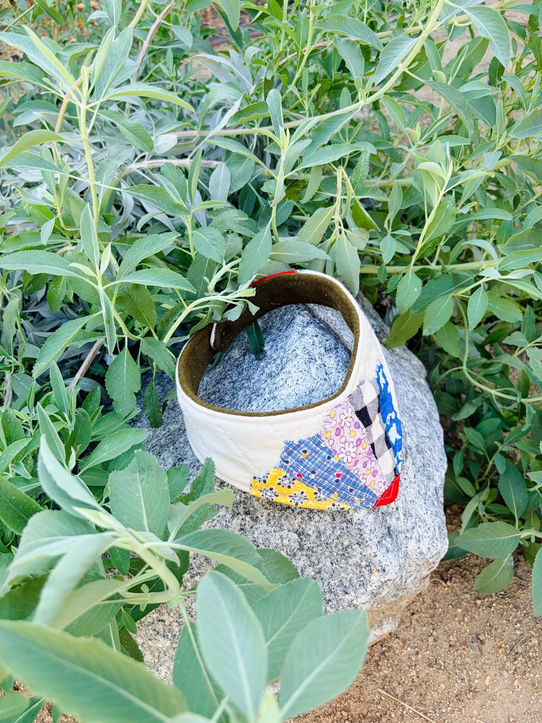 This handmade bandana is thoughtfully crafted from a reclaimed vintage quilt top, giving new life to beautiful, timeworn textiles. Each piece is truly one of a kind, showcasing unique patchwork, gentle fading, and the character that only vintage fabrics can offer.
