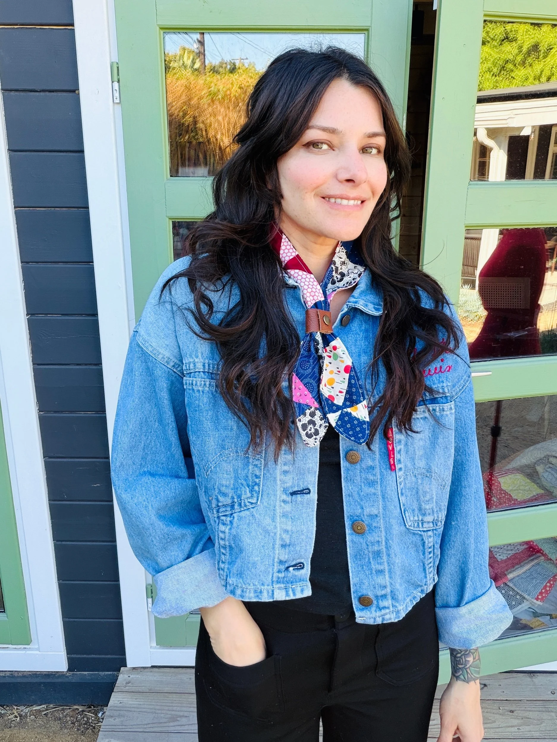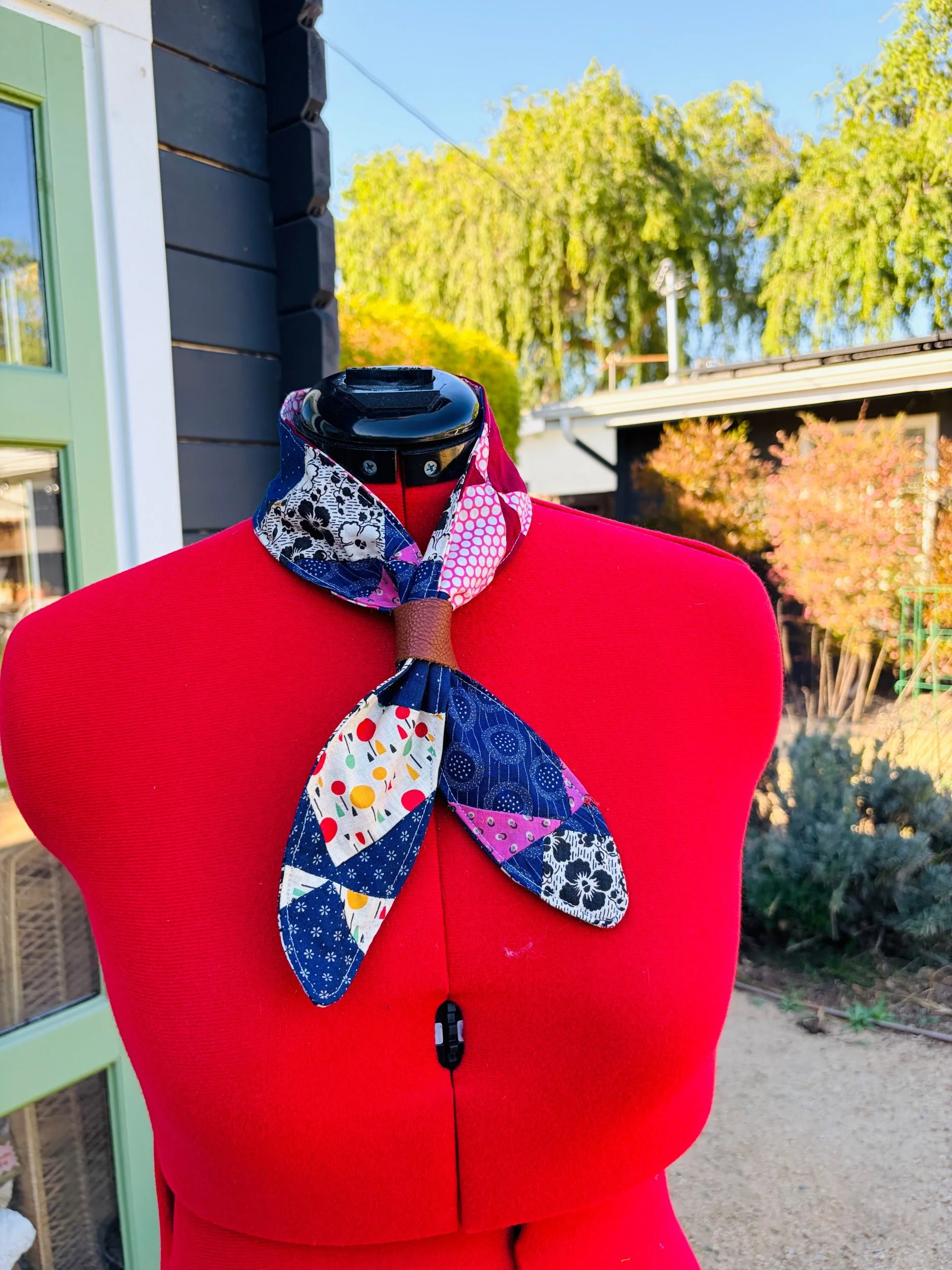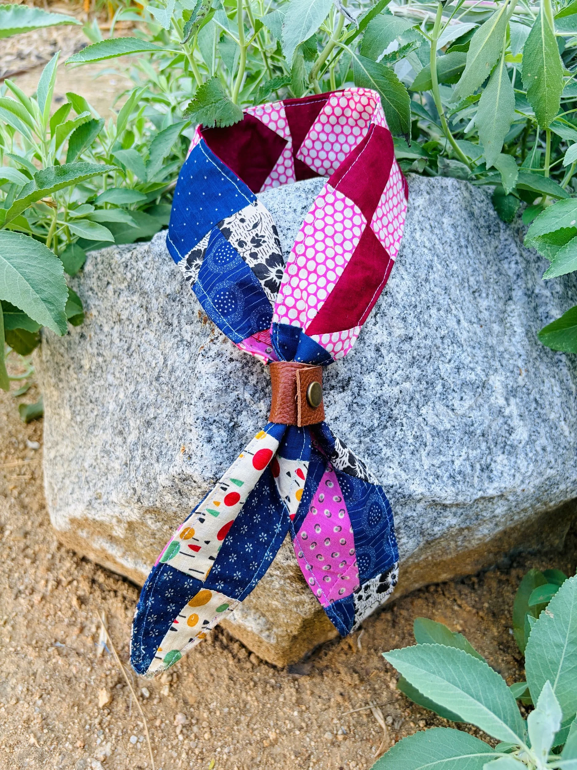 By using reclaimed vintage quilts, this bandana celebrates slow fashion and helps preserve textile history while reducing waste.