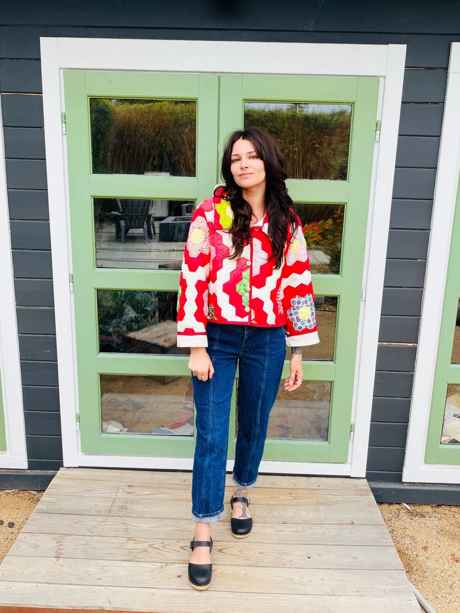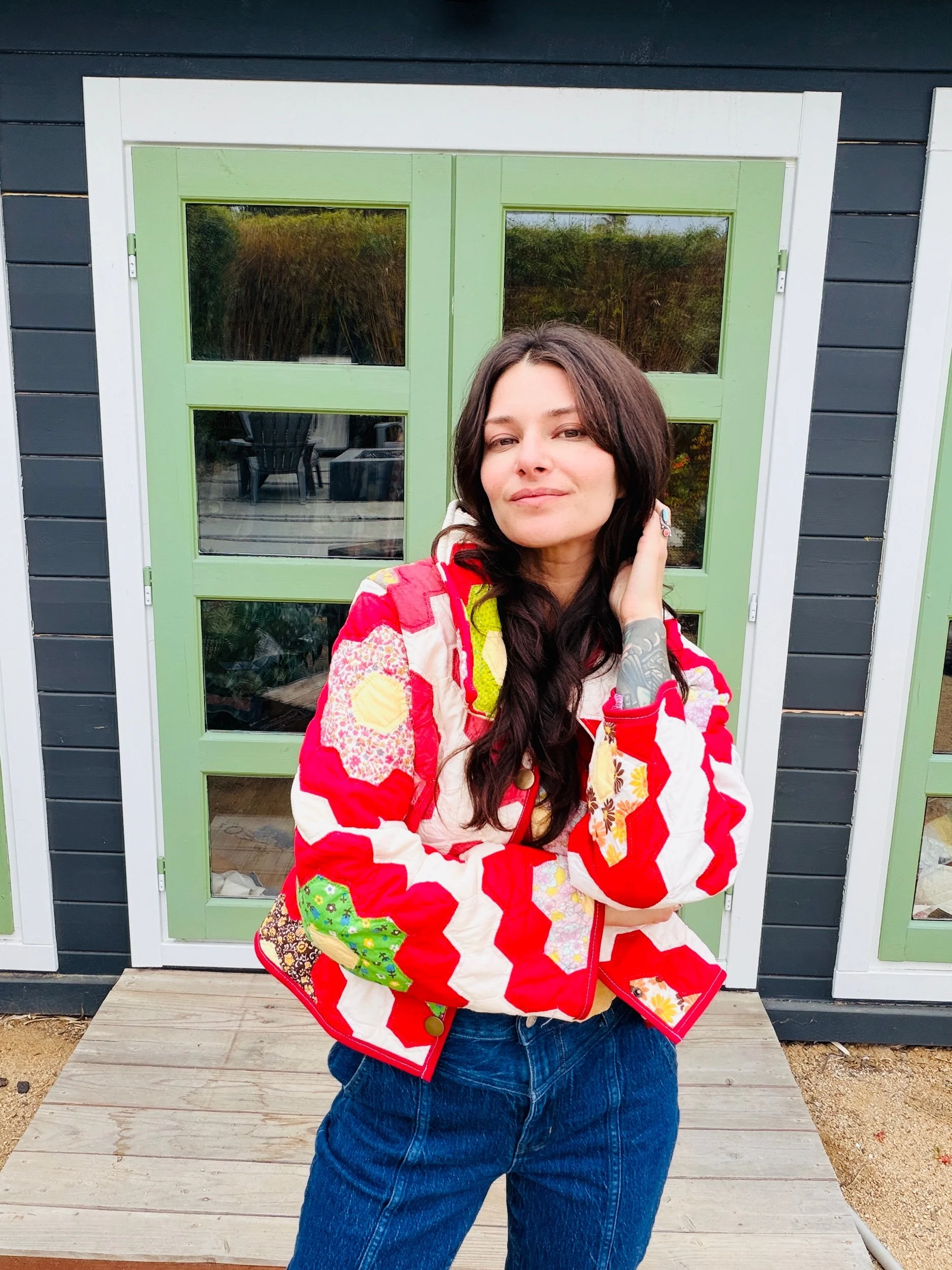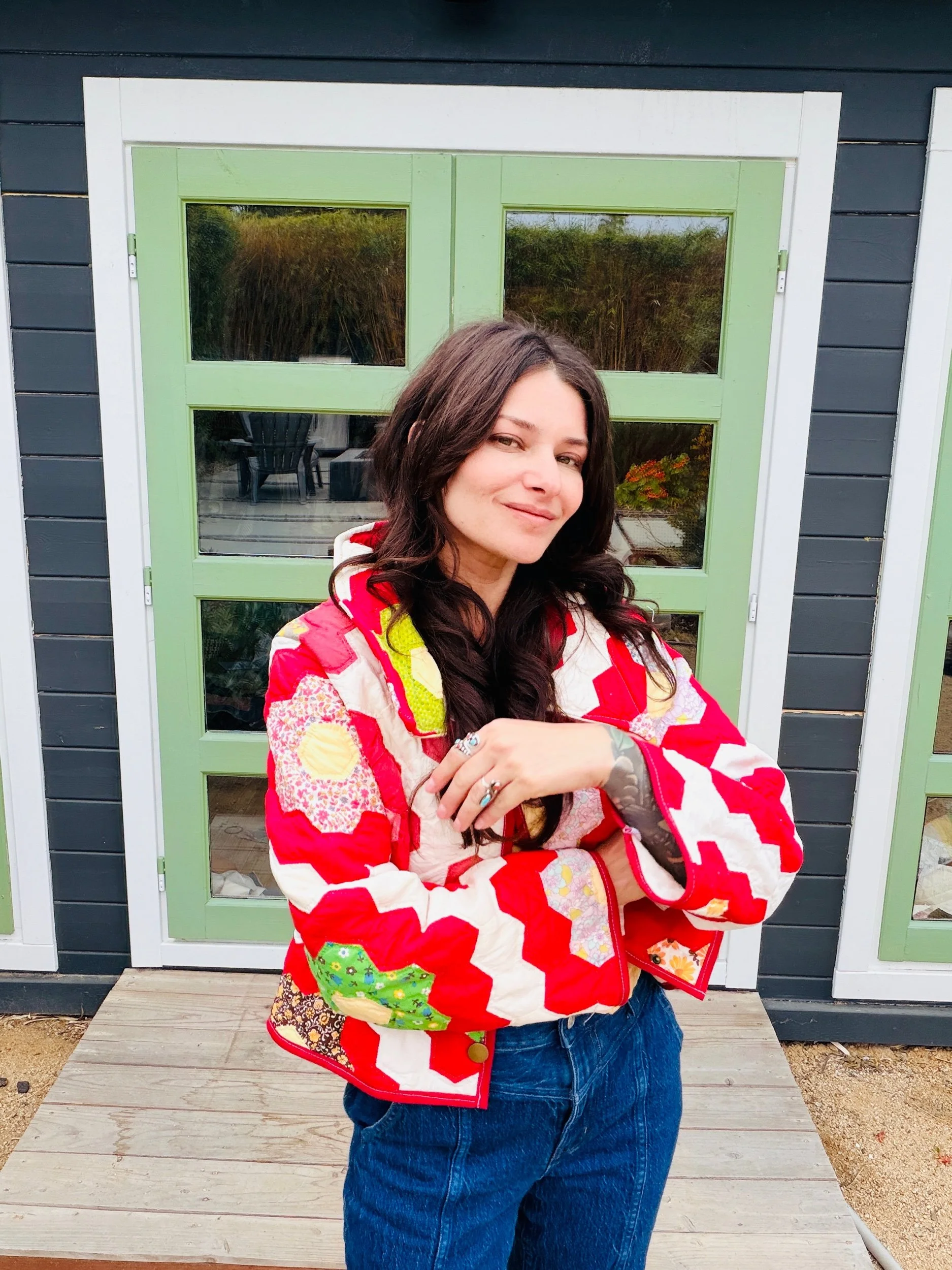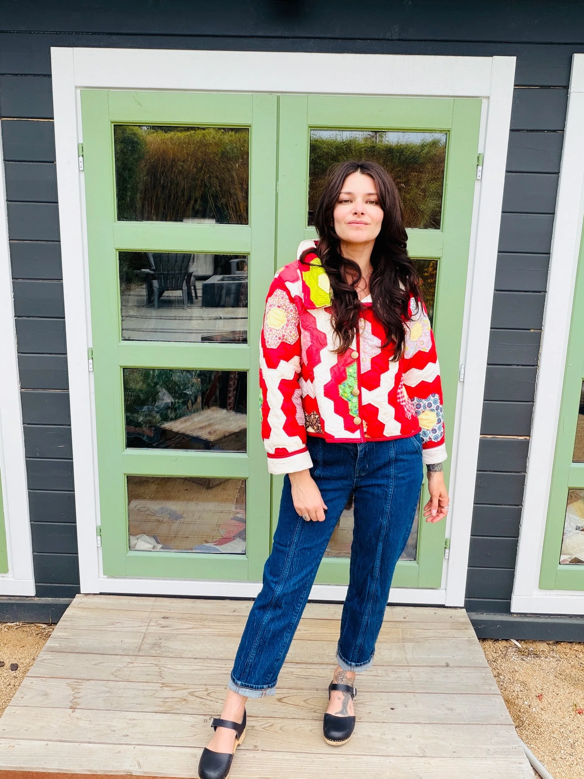 It’s a vintage quilt made into a crop jacket giving it a modern twist making it a great addition to any wardrobe.