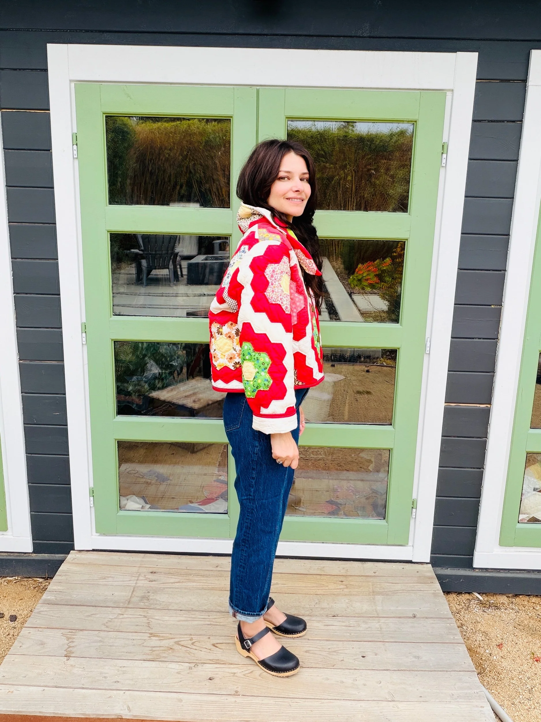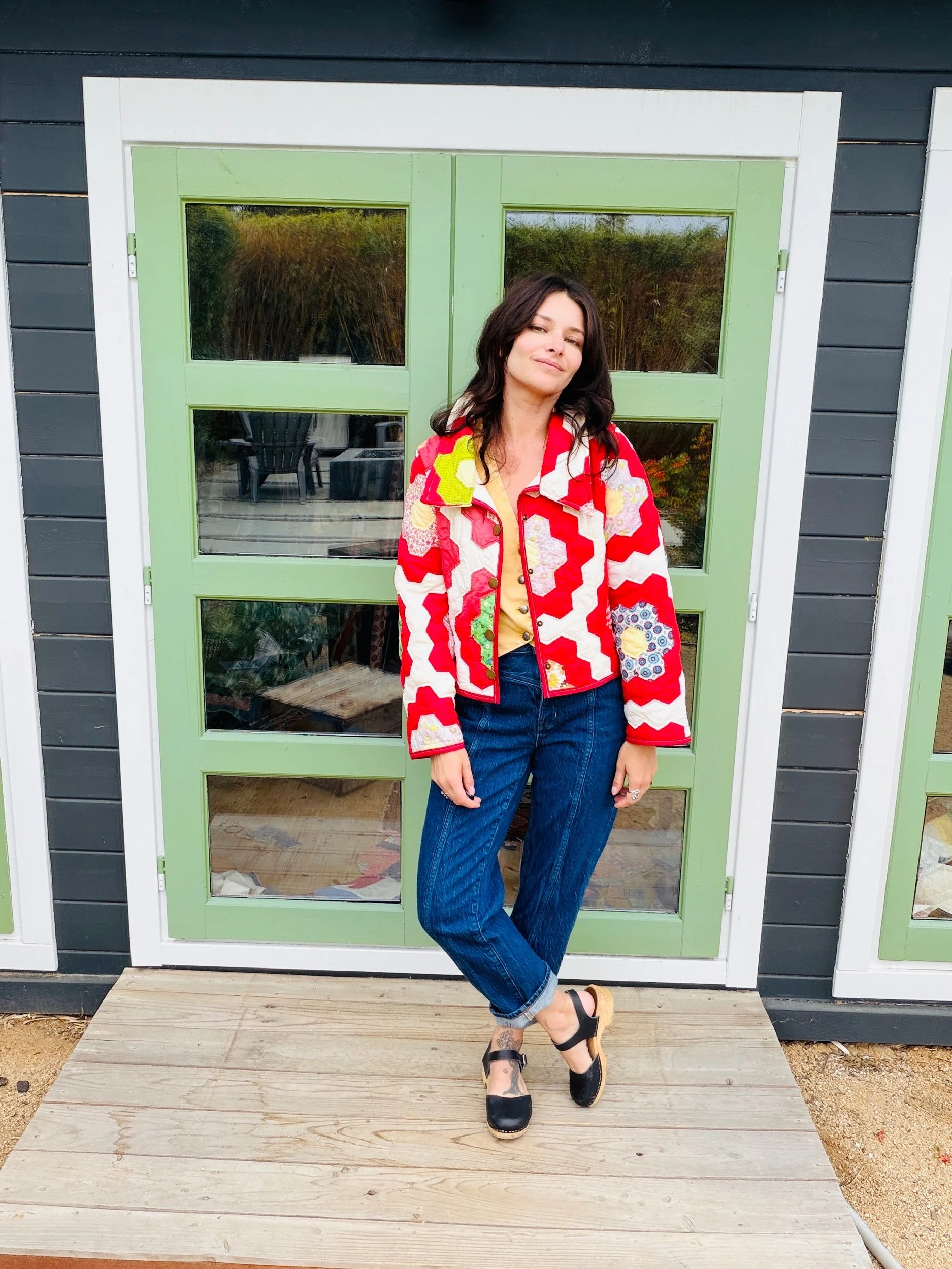 This quilt coat is a statement piece that screams slow fashion. The 1940’s colors creates a stylish and nostalgic look. Perfect for a night out around town!
