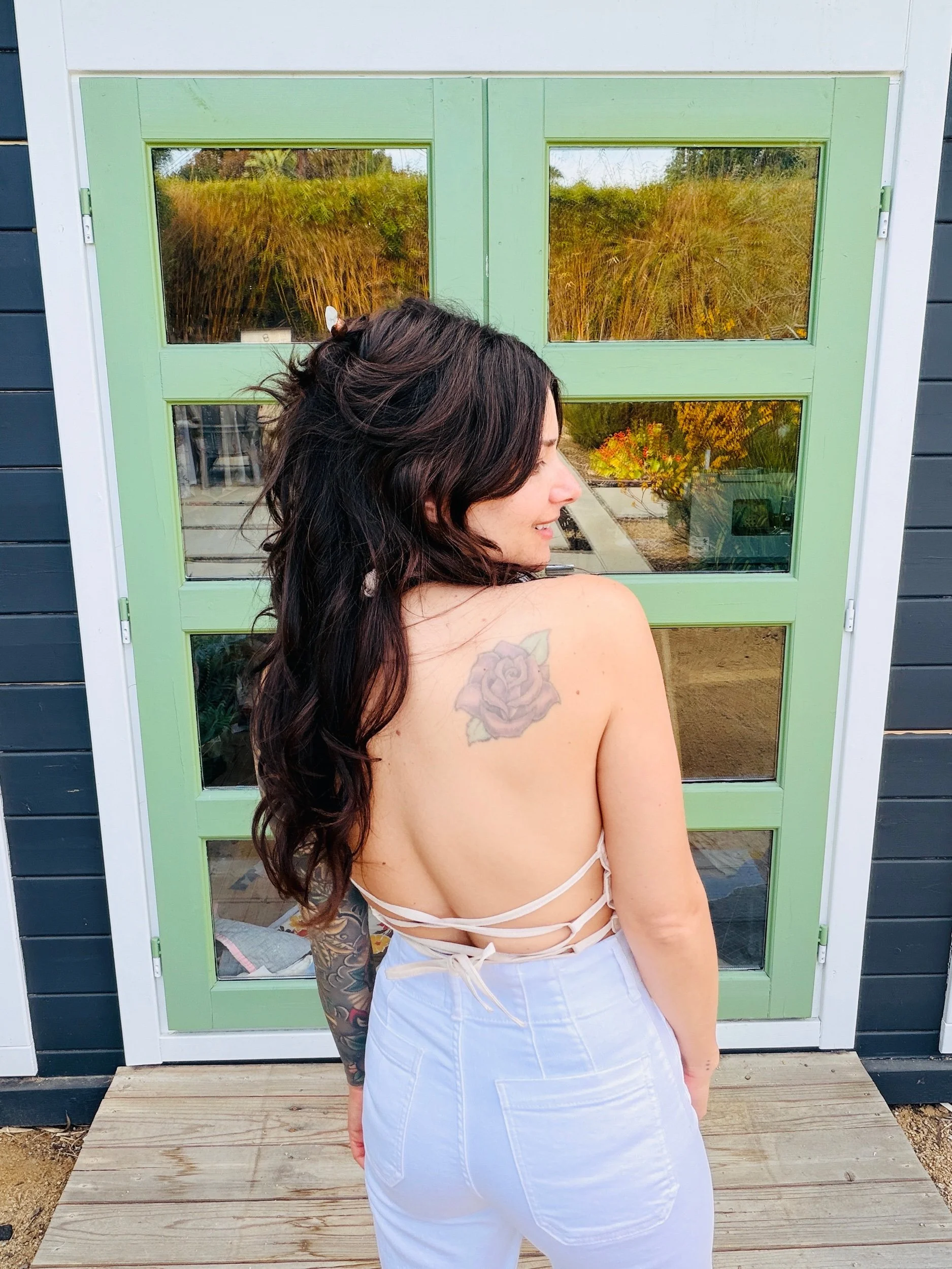Best fits a small/medium. Backless, breathable, and made for hot summer days, worn-in denim, and wandering where the road turns to dirt. One of a kind and stitched with old-world charm.