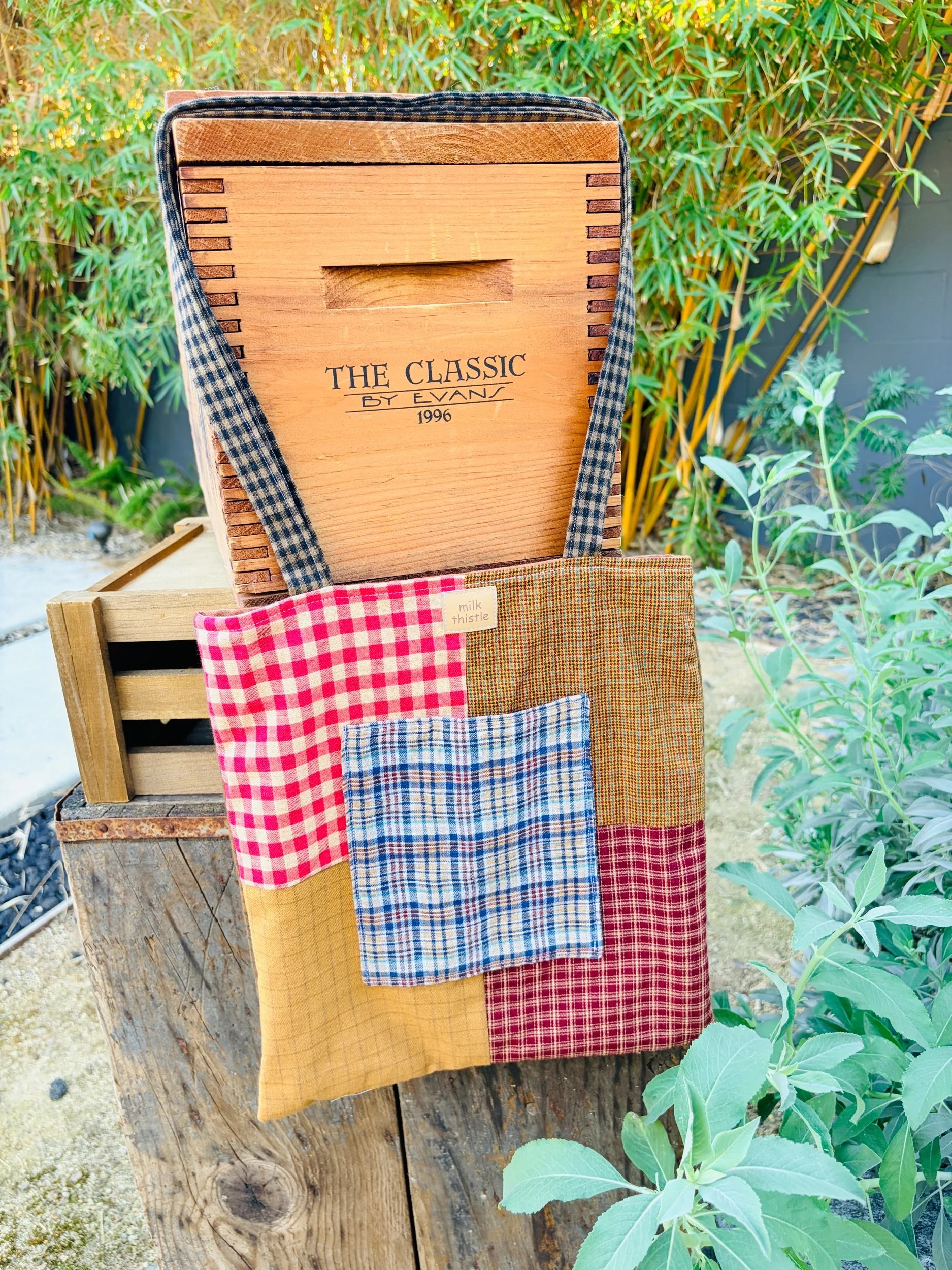 This one-of-a-kind patchwork tote is made entirely from saved fabric scraps, stitched together slow and thoughtfully so nothing good goes to waste. Every piece tells a little story—bits of color and texture coming together into something sturdy, useful, and beautiful.