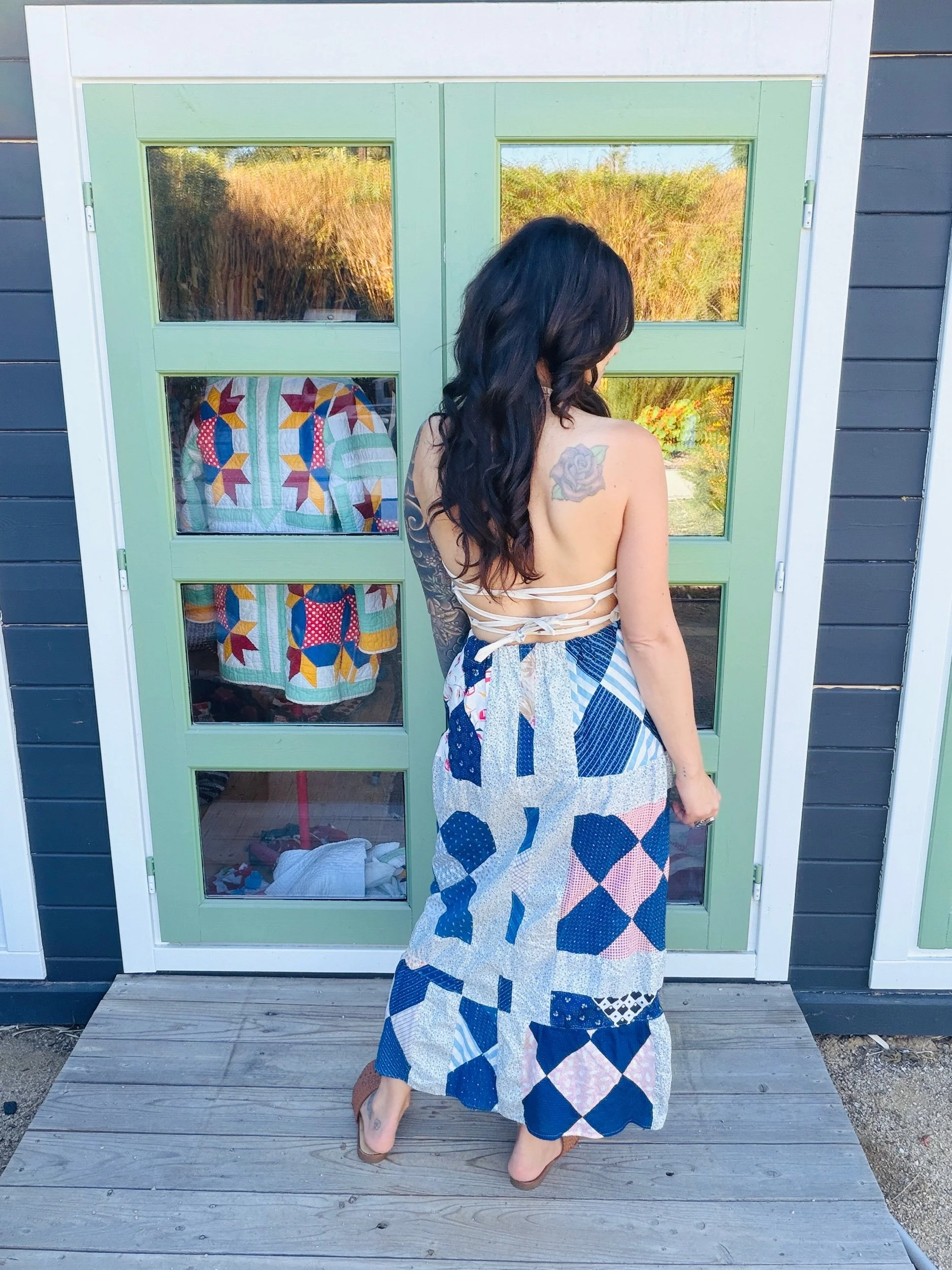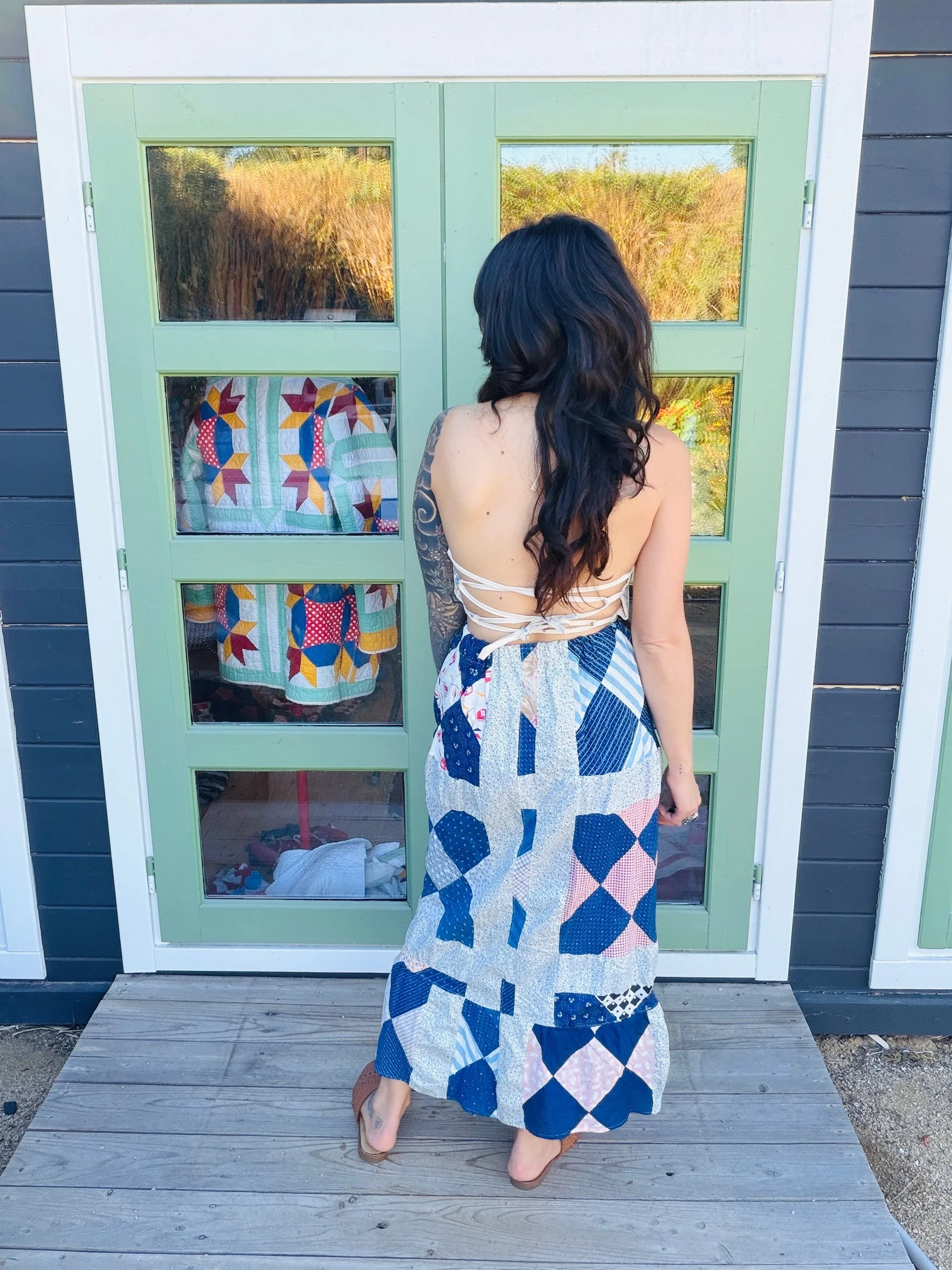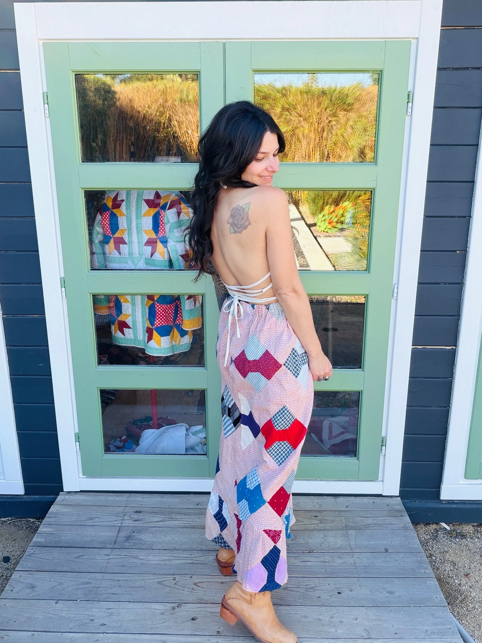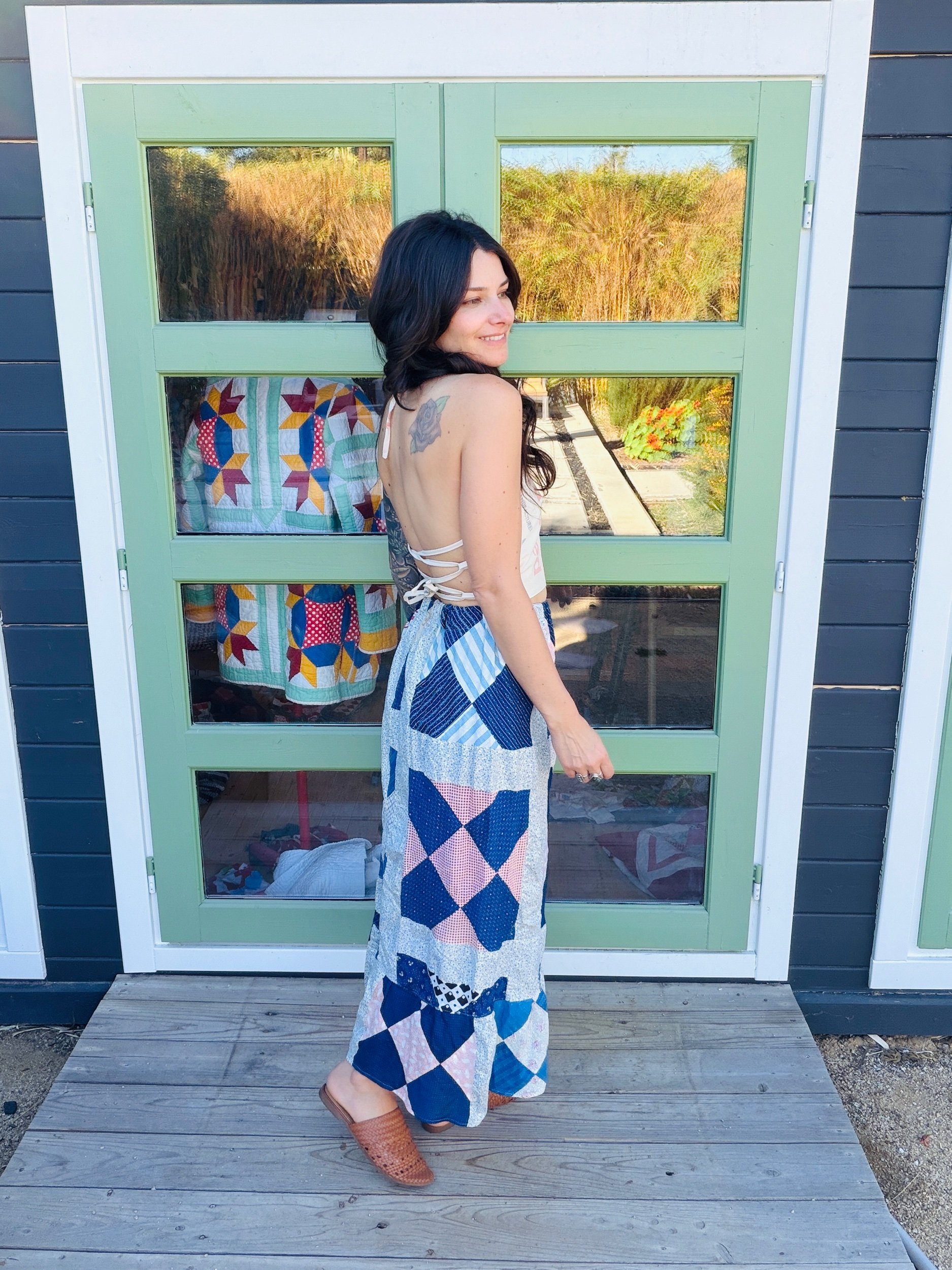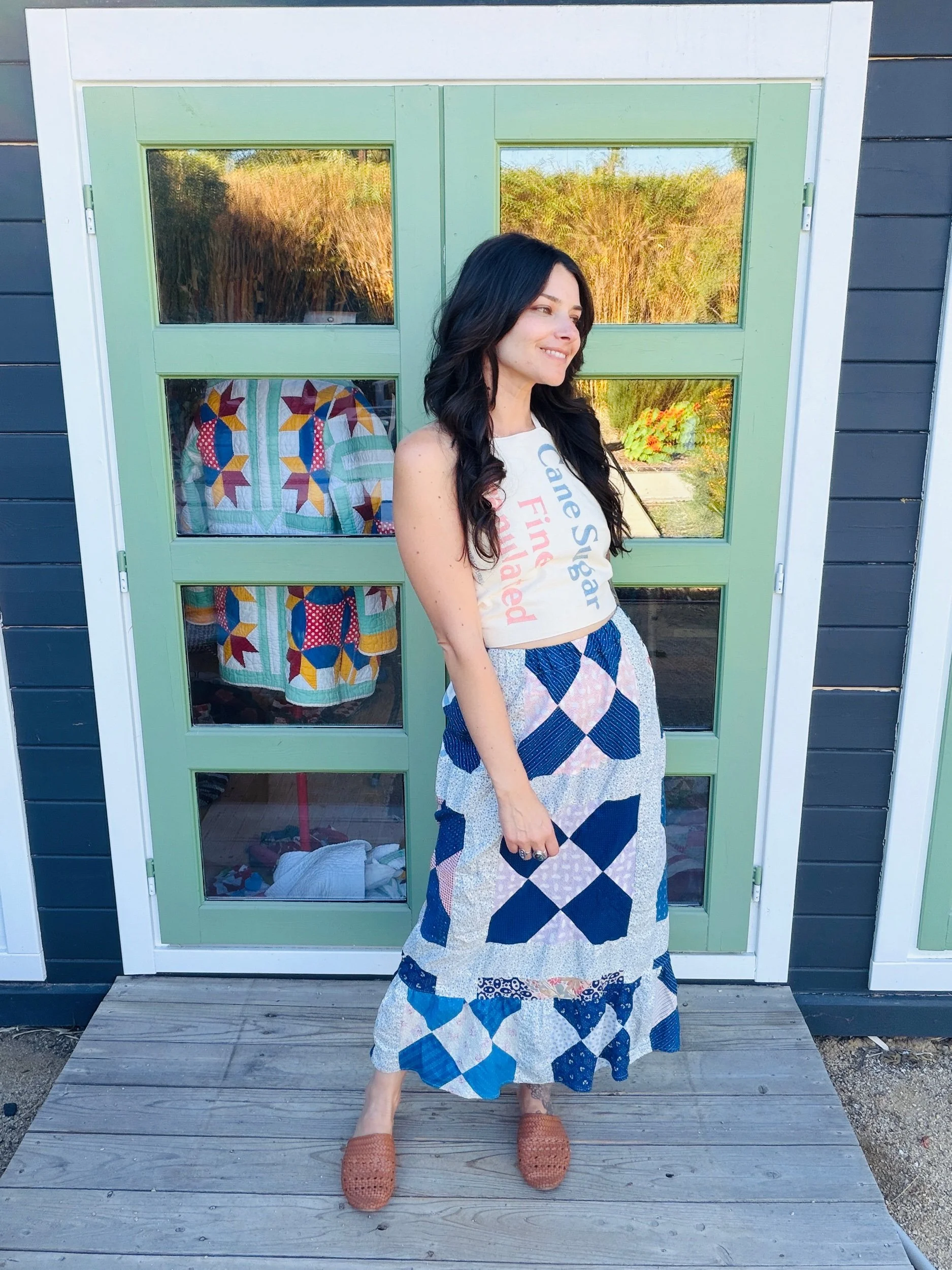 This one-of-a-kind handmade prairie skirt is crafted from a carefully sourced vintage quilt top, giving new life to a beautiful piece of textile history. Each skirt tells its own story through time-softened fabrics, intricate patchwork, and gentle signs of age that make it truly unique.