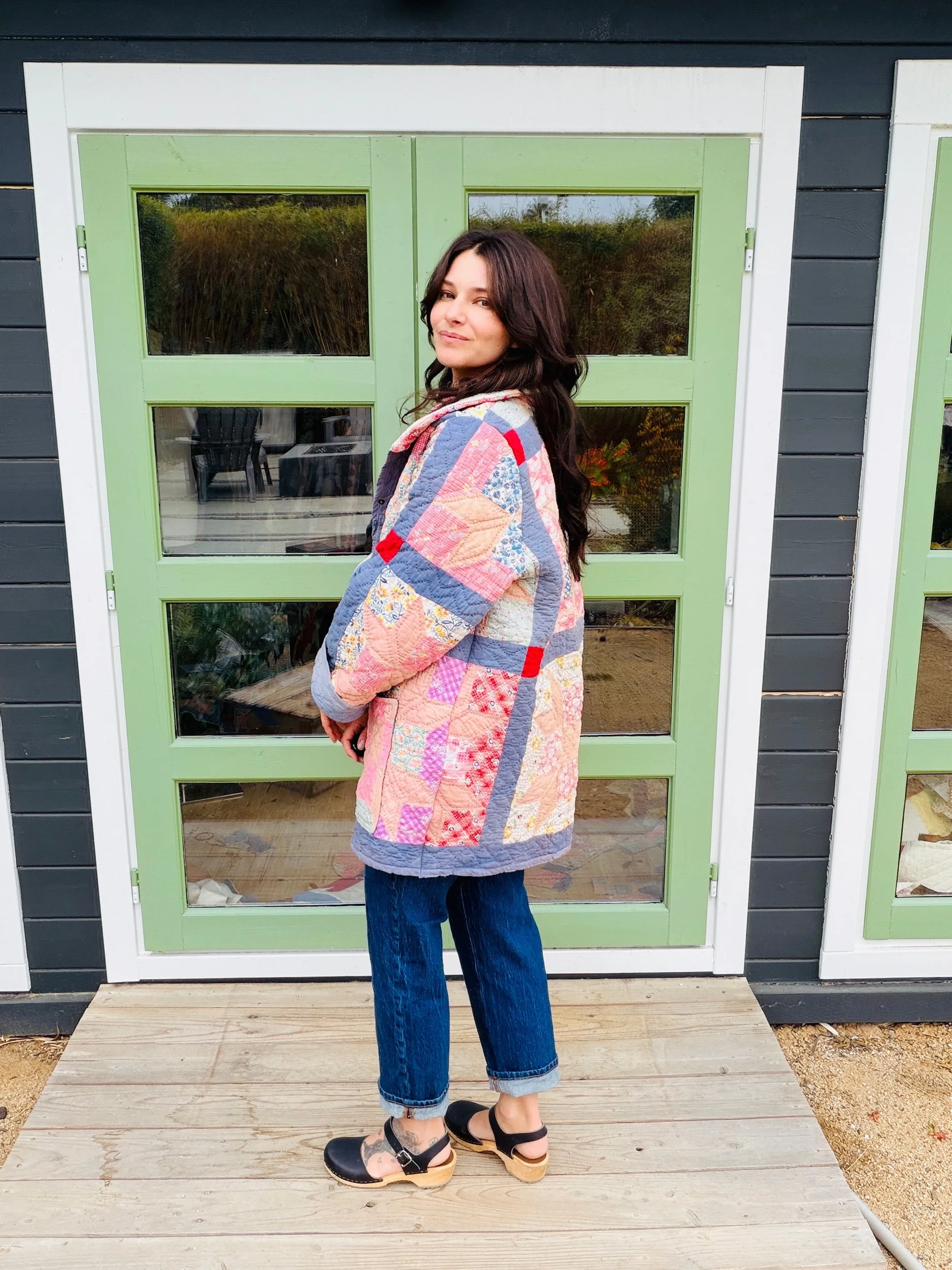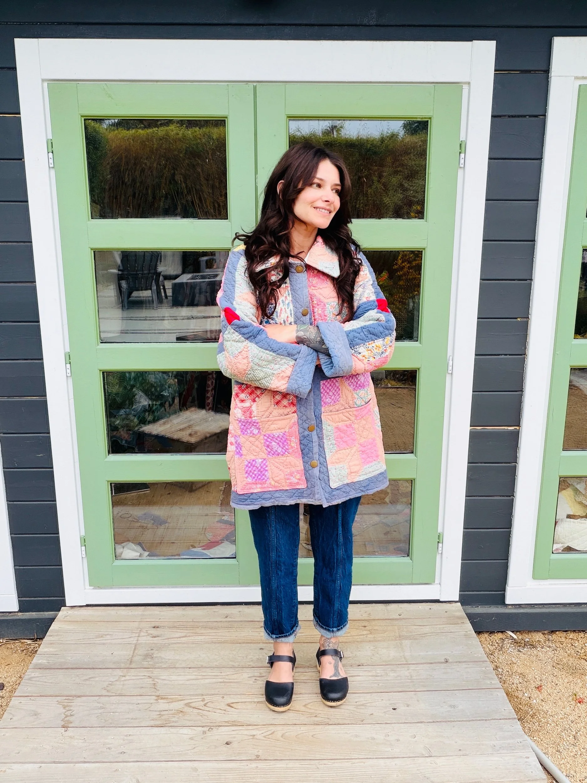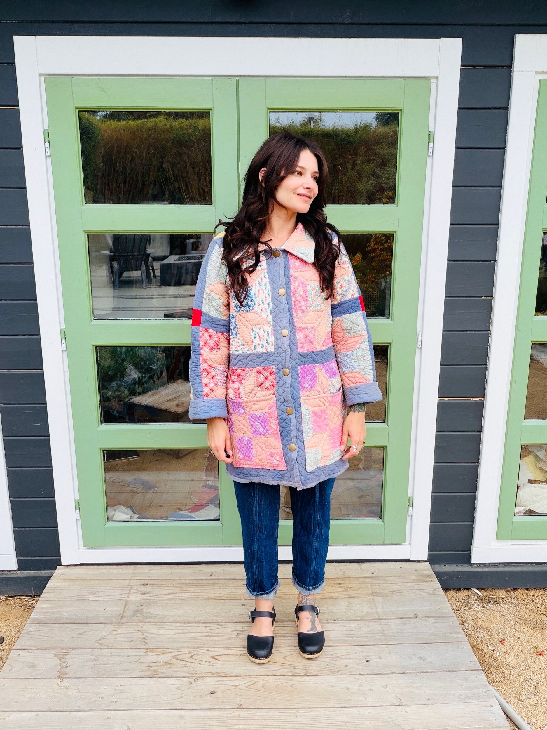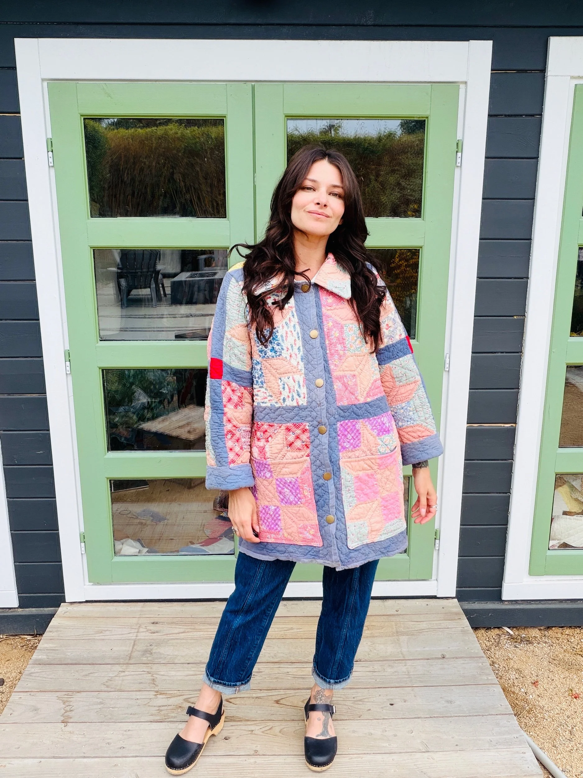 A true heirloom piece, this one-of-a-kind chore coat is handcrafted from a 1940’s quilt, full of soft, timeworn color and patchwork detail. Designed in a relaxed medium fit, it layers effortlessly while still feeling special enough to stand on its own.