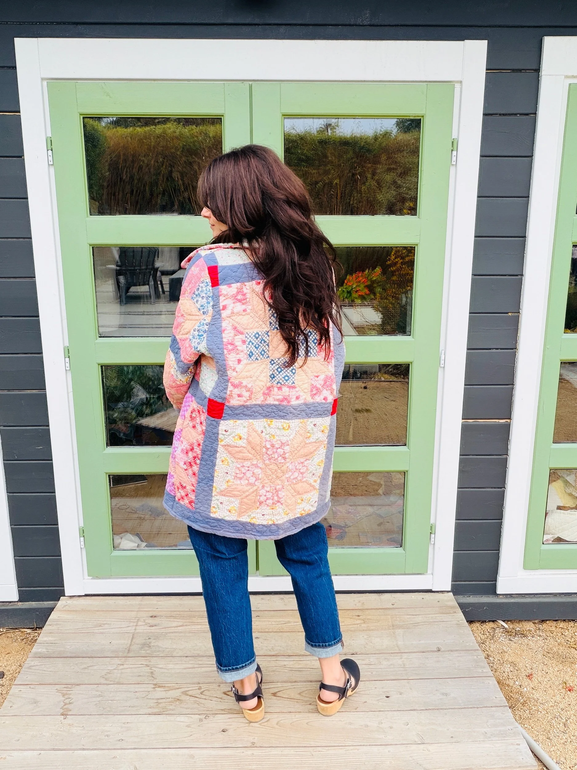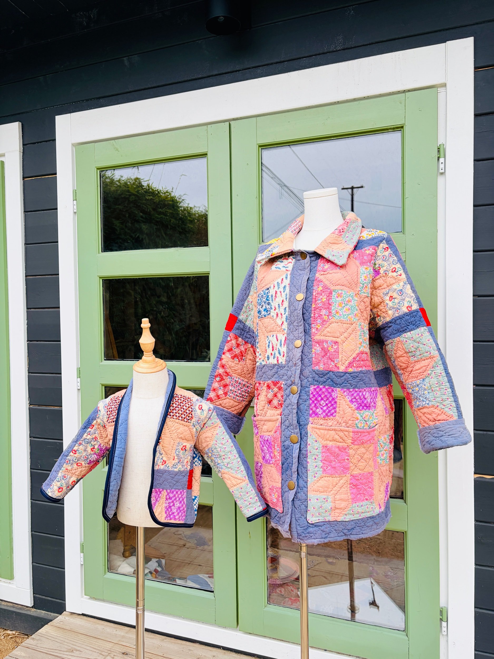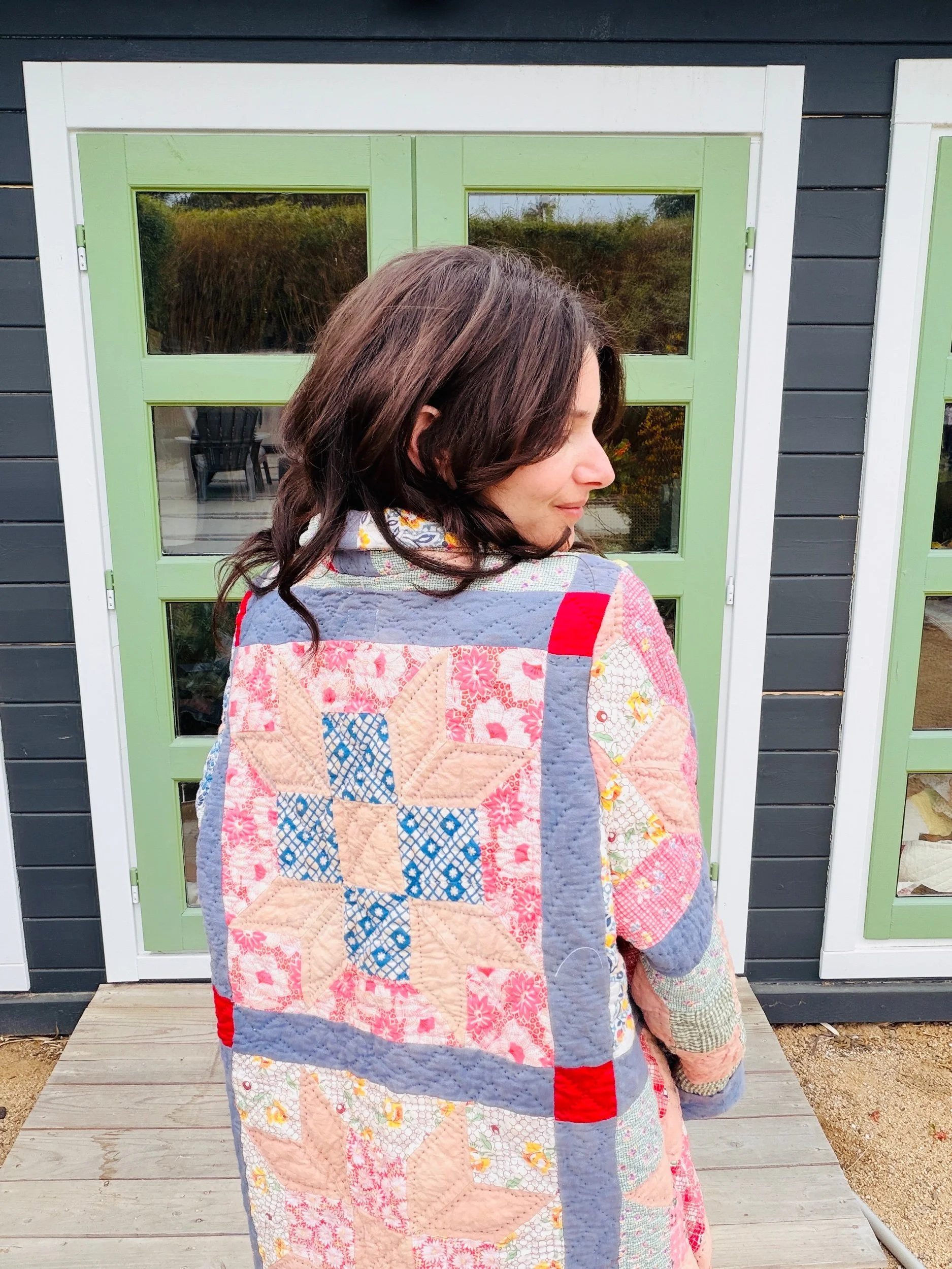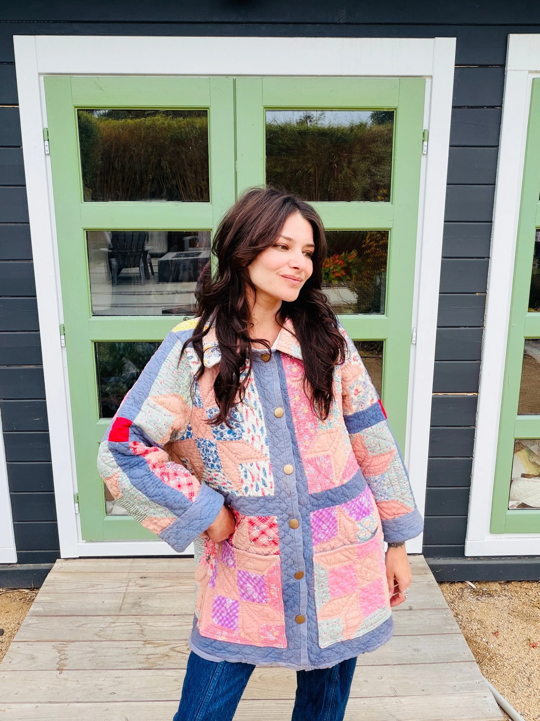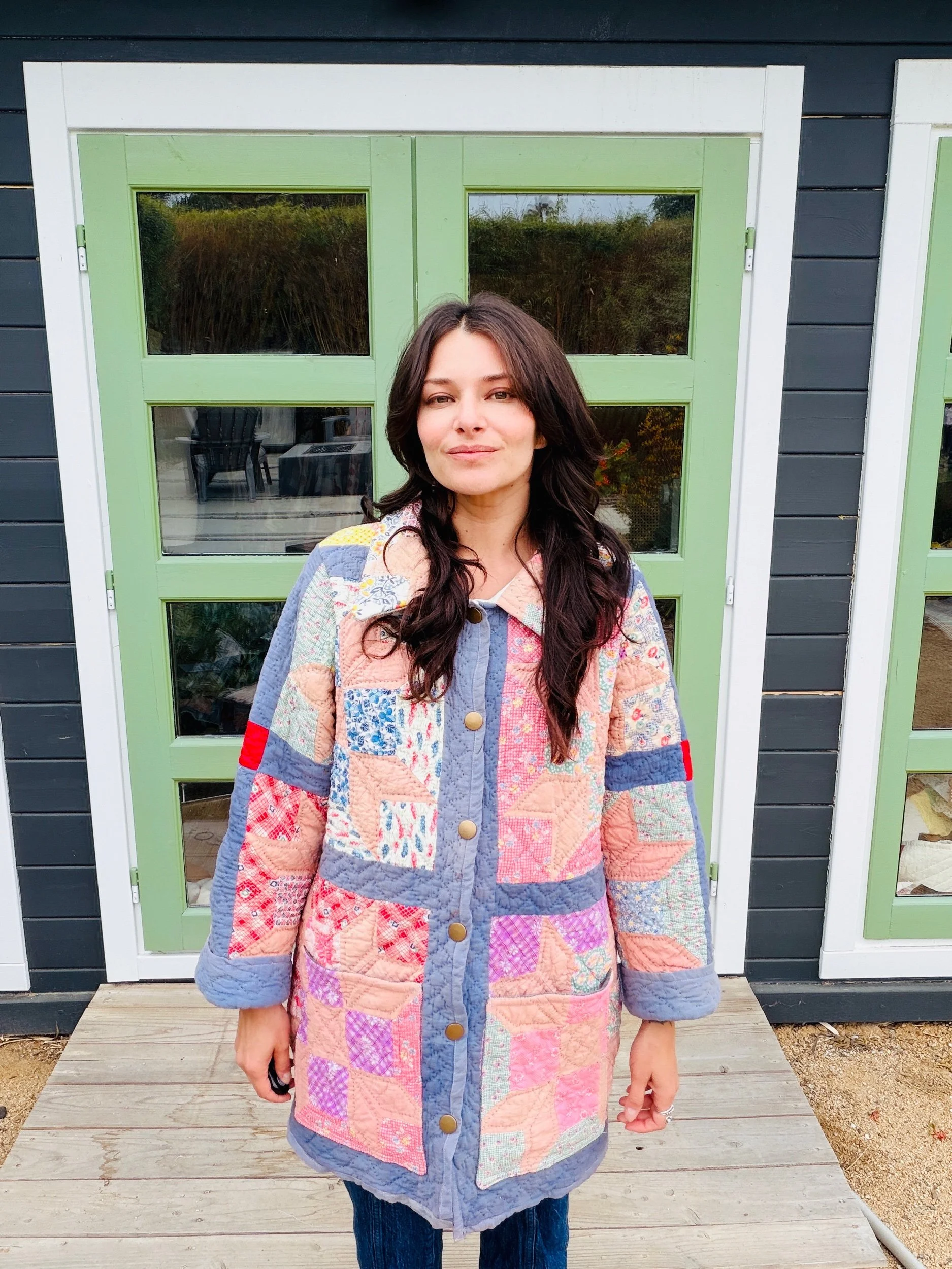 A true heirloom piece, this one-of-a-kind chore coat is handcrafted from a 1940’s quilt, full of soft, timeworn color and patchwork detail. Designed in a relaxed medium fit, it layers effortlessly while still feeling special enough to stand on its own.