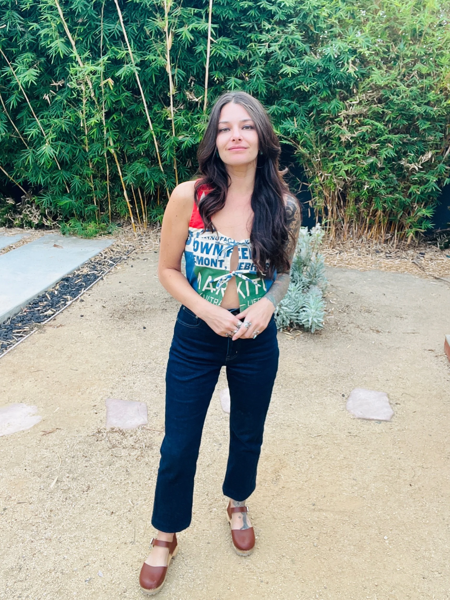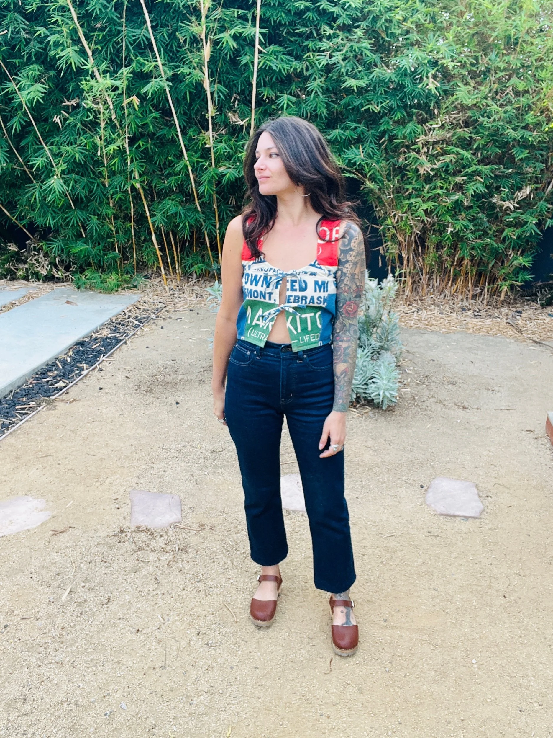 I used the Catalina Top pattern by Cayden Naughton to create this look. Her patterns are incredible if you want to sew the cutest top you’ve ever seen!