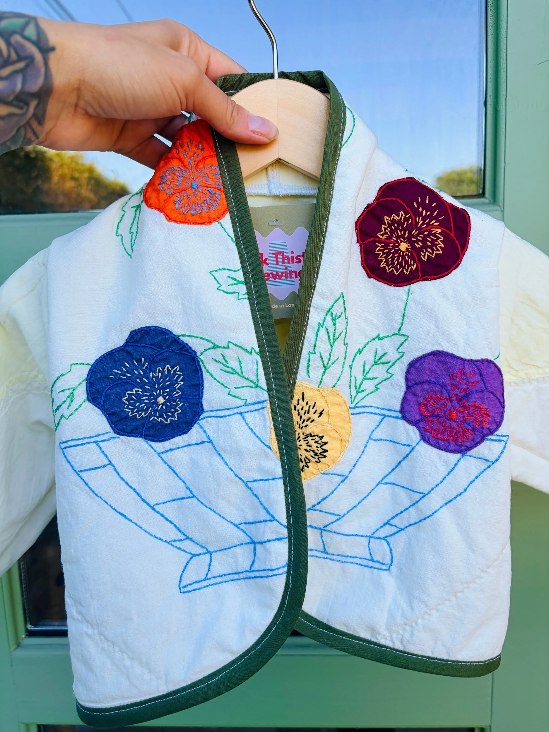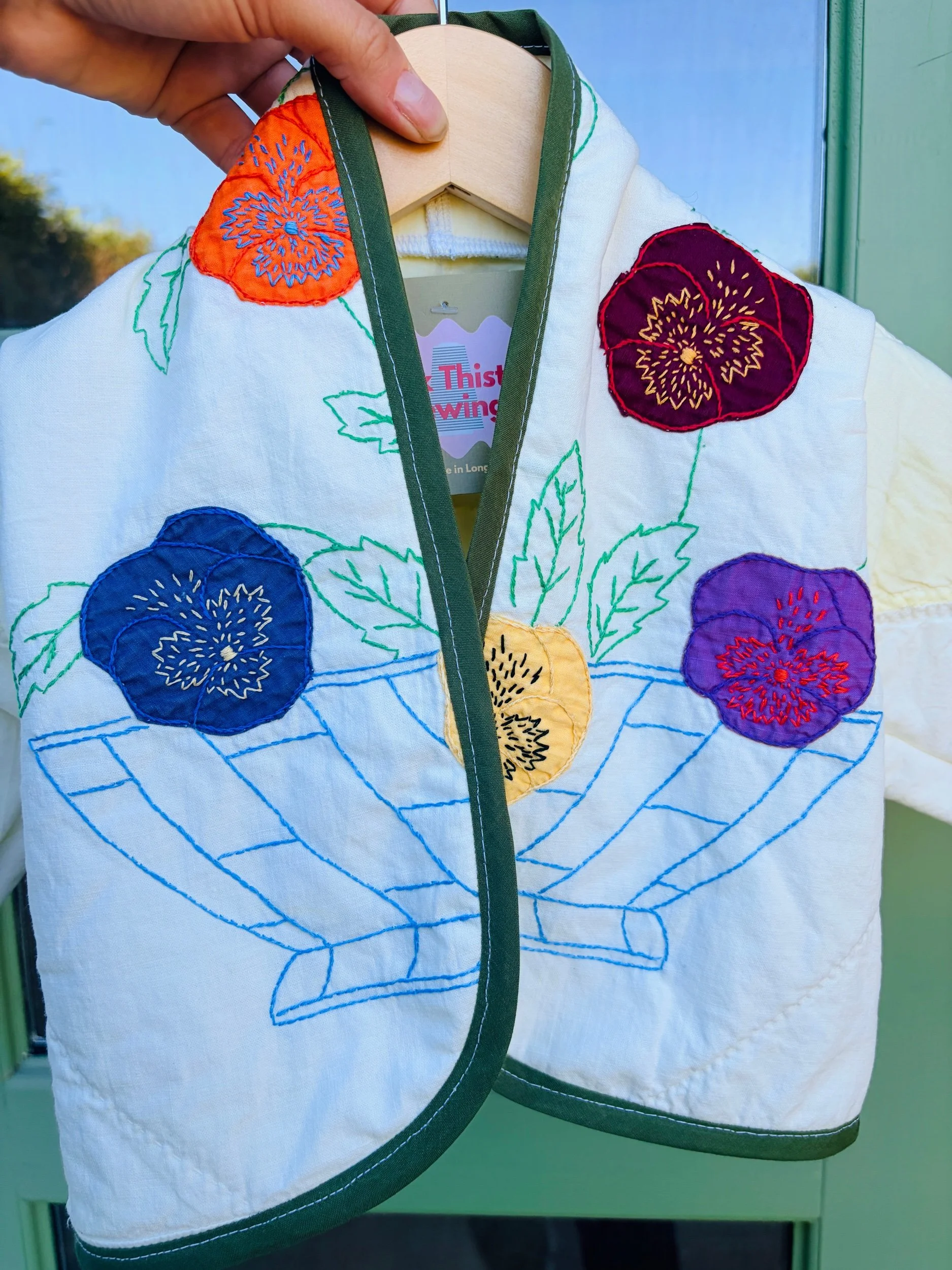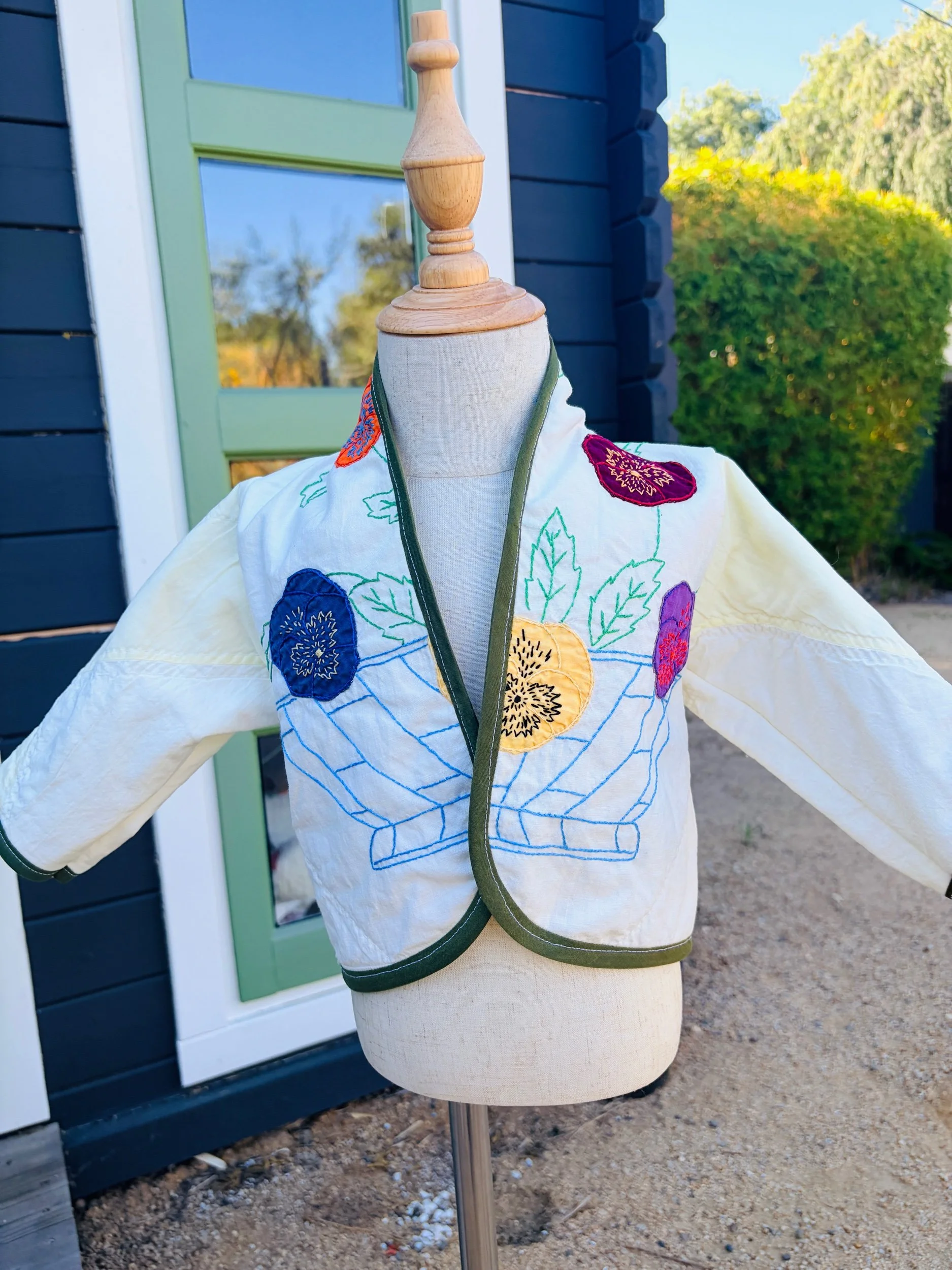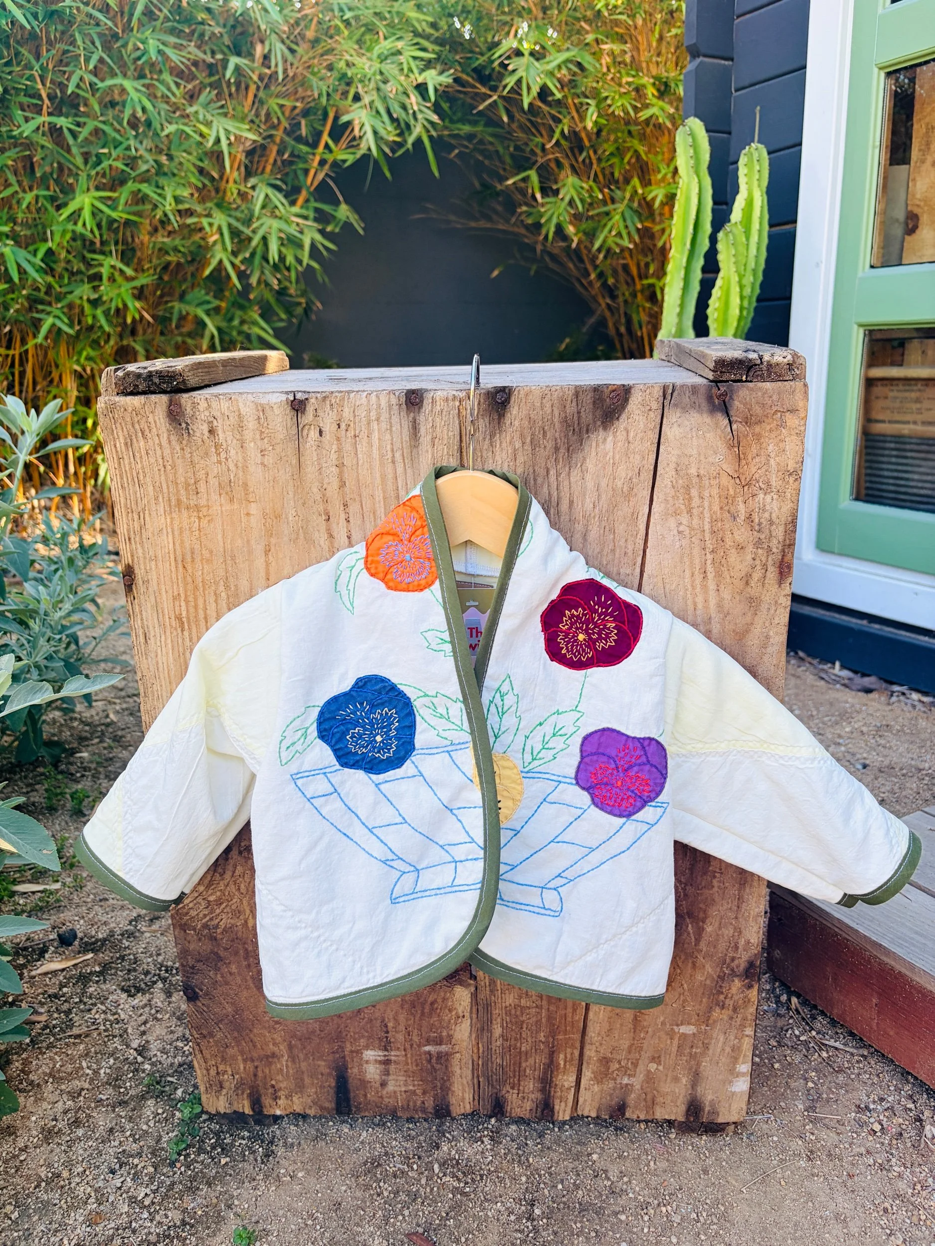 This handmade baby coat is crafted from a vintage quilt, giving new life to timeworn fabric rich with history and warmth. Each stitch carries a story, creating a one-of-a-kind piece that feels both nostalgic and timeless. Soft, cozy, and thoughtfully made, it’s perfect for layering on crisp mornings or quiet afternoon strolls.