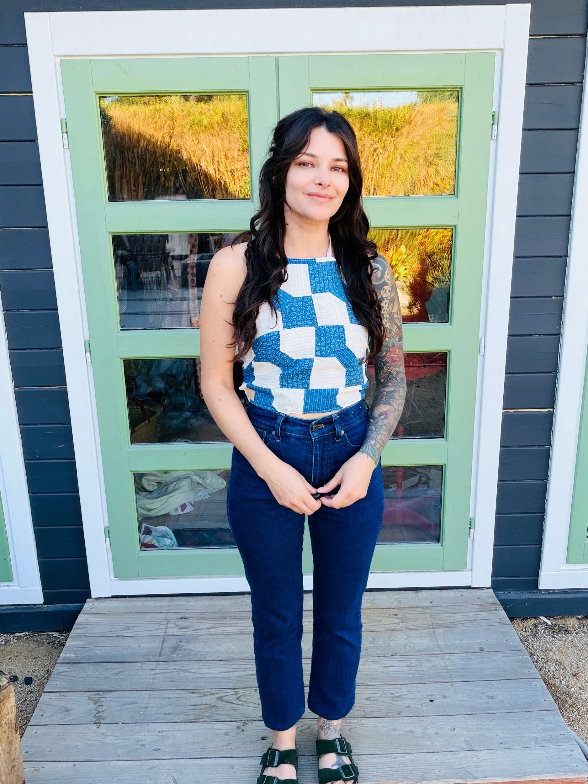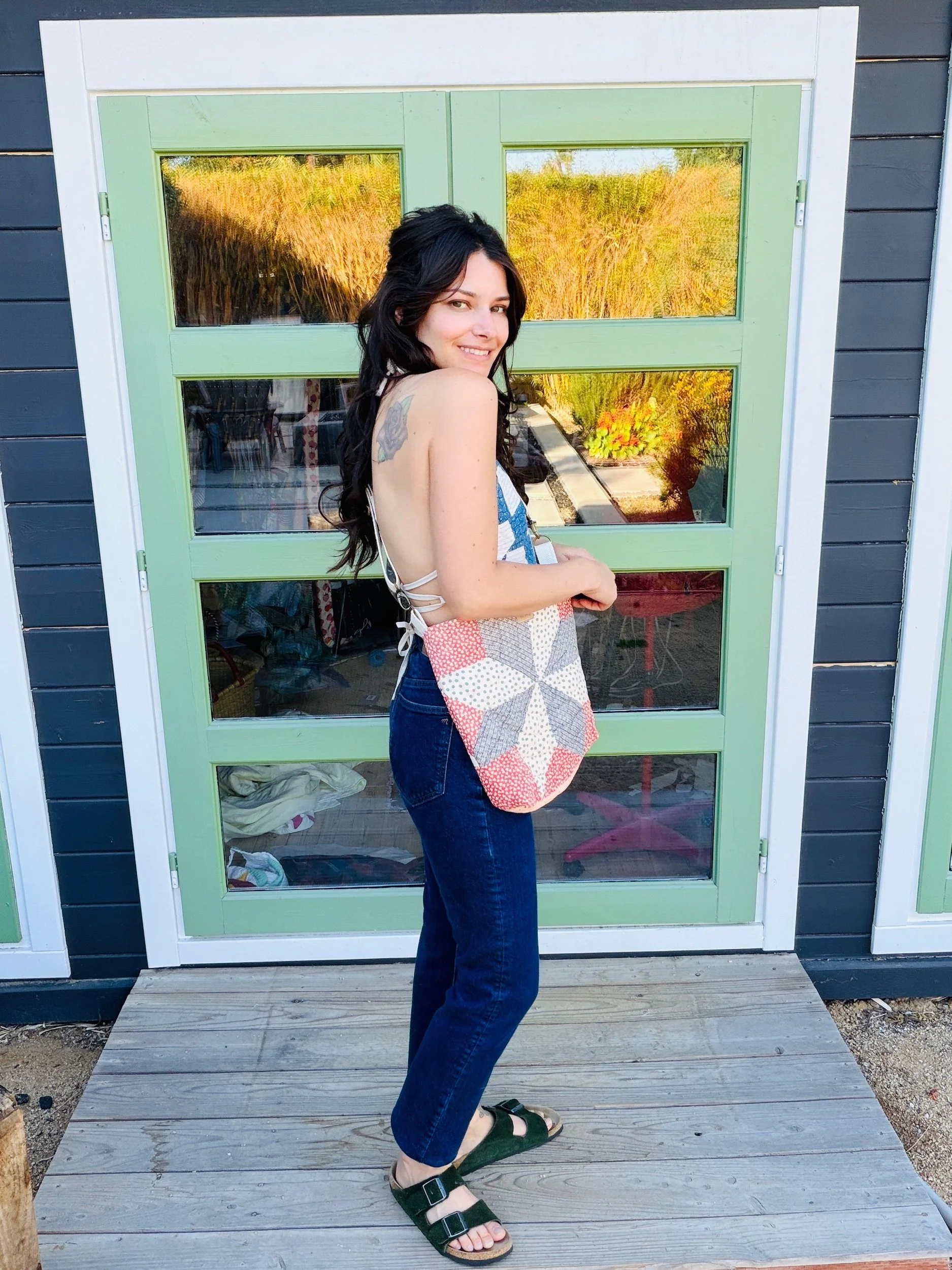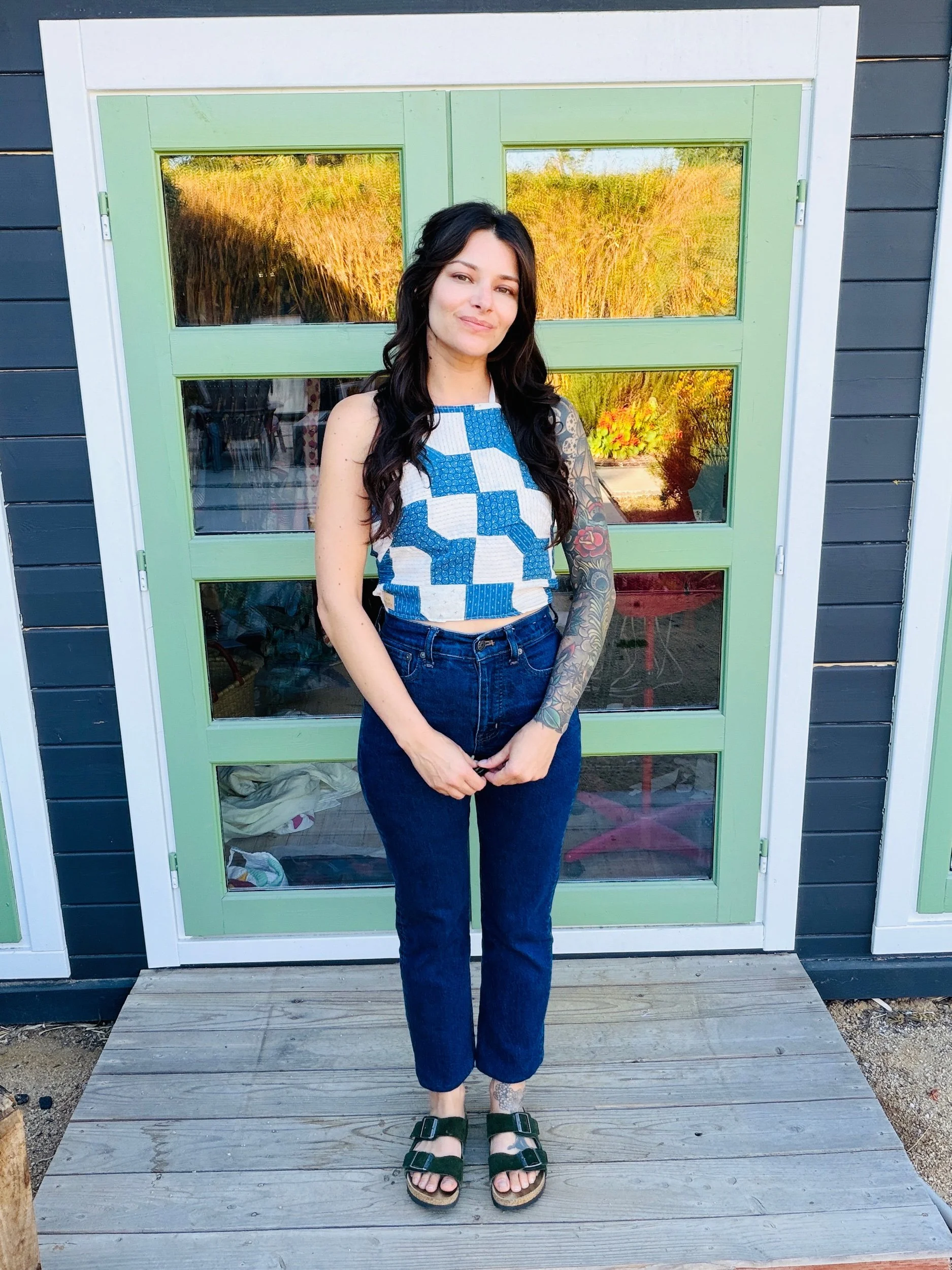 This handmade halter top is crafted from vintage quilt tops, giving new life to timeworn textiles and the hands that made them. Softly structured yet easy to wear, it’s lined with breathable linen for comfort against the skin.