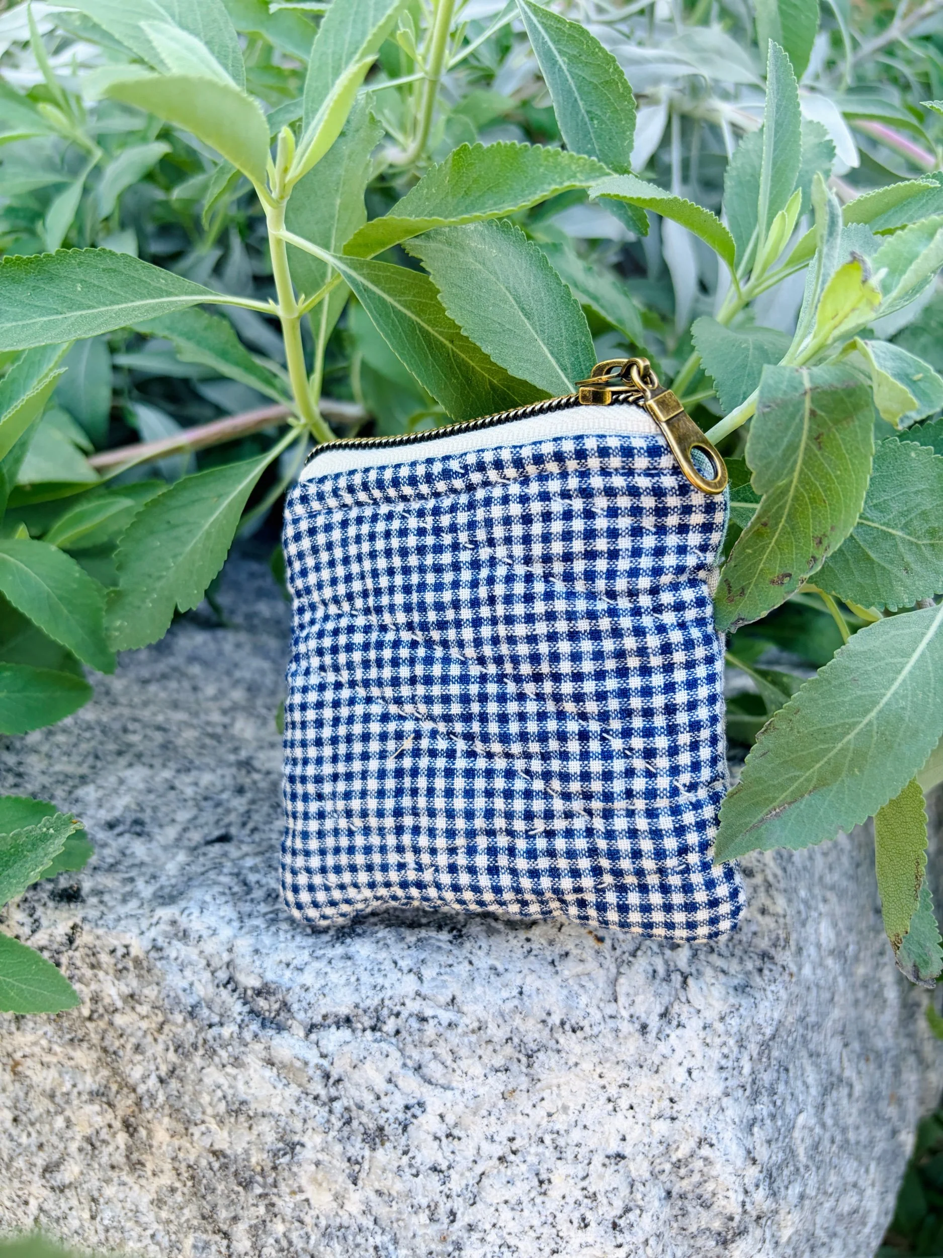 A tiny piece of history, stitched to carry with you. This 2.5 x 2.5 handmade zipper bag is crafted from an antique quilt, giving it a story and character that modern fabrics simply can’t replicate. The exterior showcases the timeworn beauty of vintage quilting, while the interior is lined with authentic feed sack fabric, a nod to early American resourcefulness and farm life.