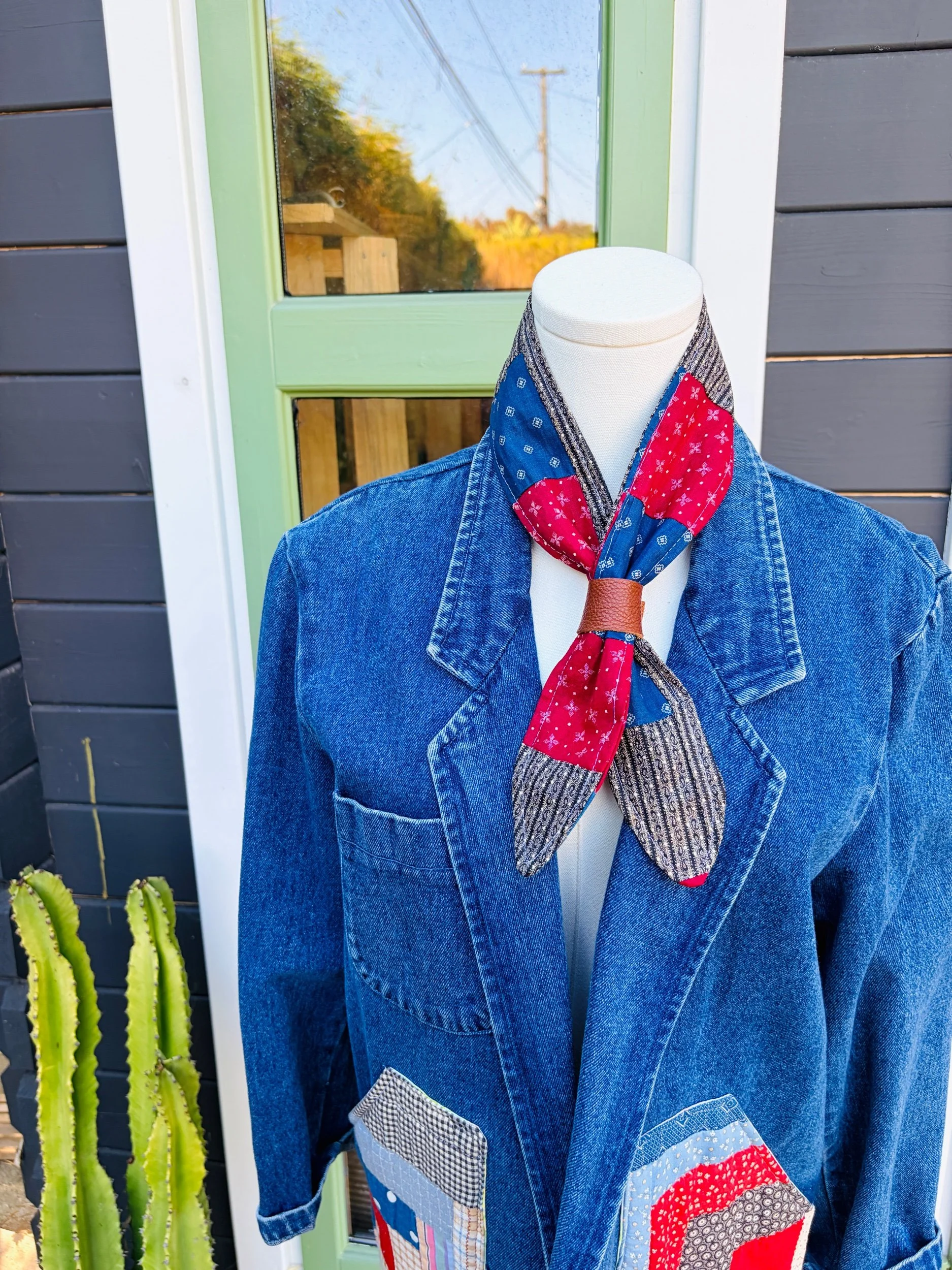 This handmade quilt bandana is thoughtfully sewn by Milk Thistle Sewing using salvaged quilted cotton, giving new life to old textiles. Each piece carries its own history—soft, worn-in, and one of a kind.