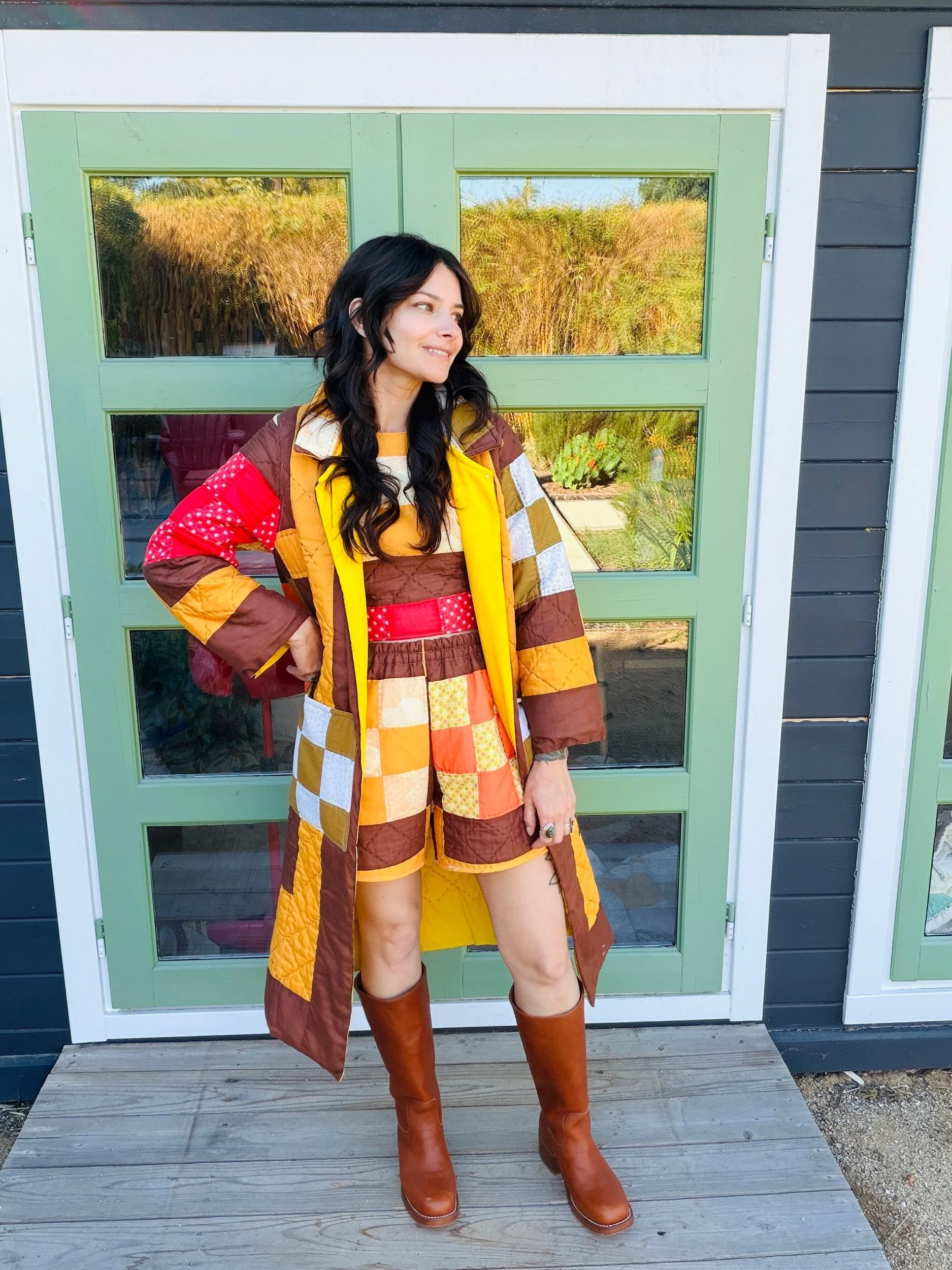 Due to the vintage nature of the quilt, minor imperfections such as small repairs, fading, or wear may be present. These details are celebrated as part of the garment’s character and history.