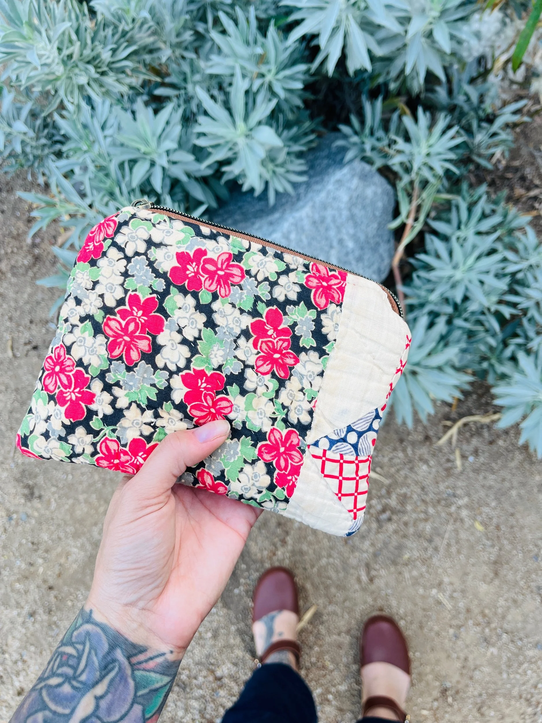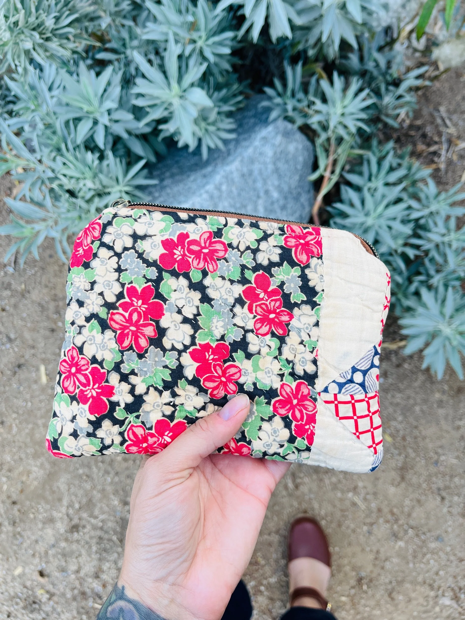 This 5x7 Handmade 1920’s patchwork Travel Bag is a charming accessory that blends nostalgia with practicality. This bag showcases the beloved patchwork design, reminiscent of cozy homemade quilts.