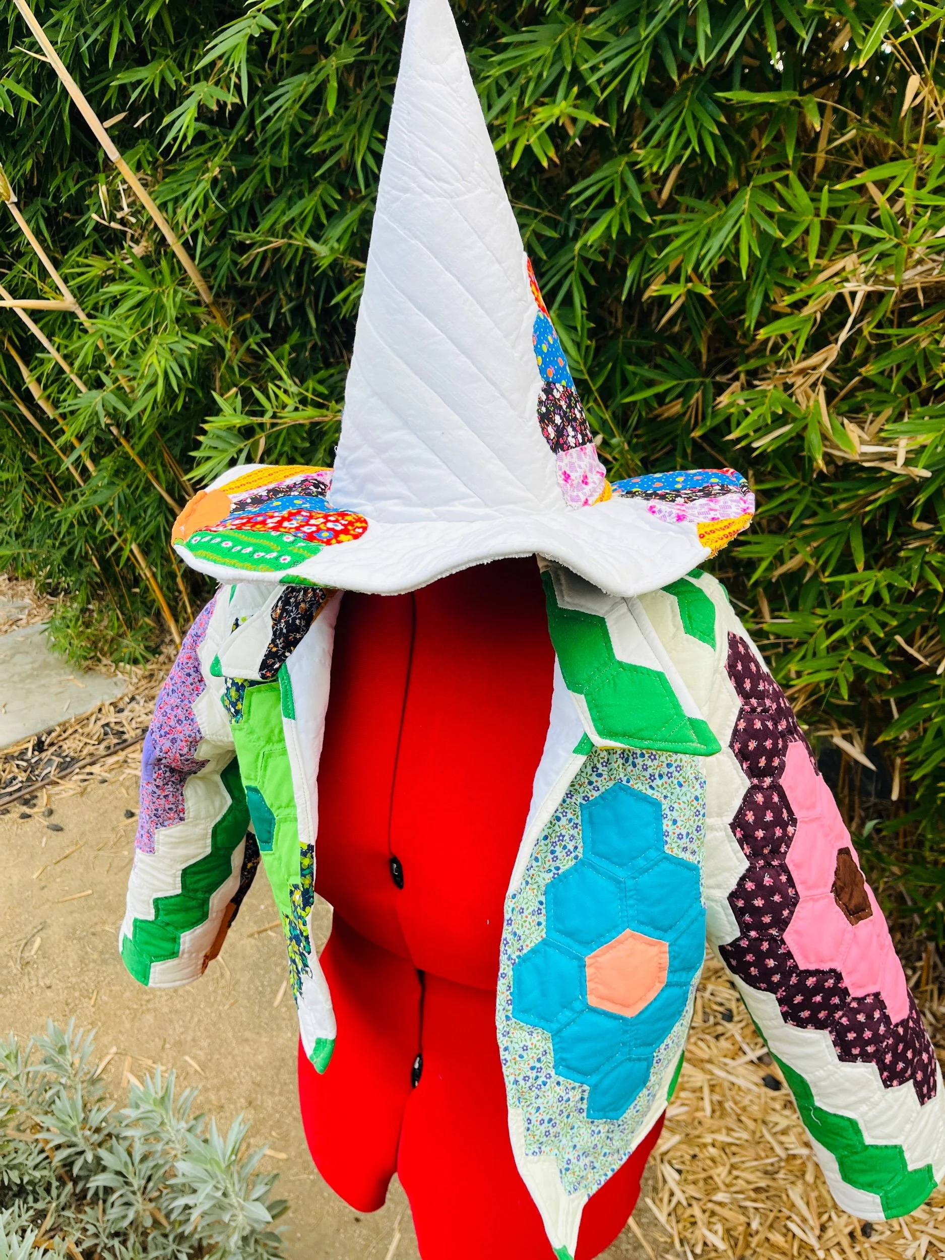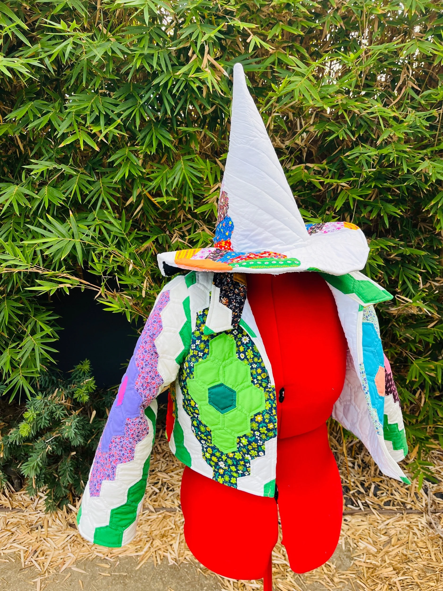 Why settle for a boring black hat when you can serve patchwork realness? This quilted witch hat says, yes, I cast spells… but I also quilt on Tuesdays. It’s bold, it’s cozy, and it’s proof you can hex in comfort.