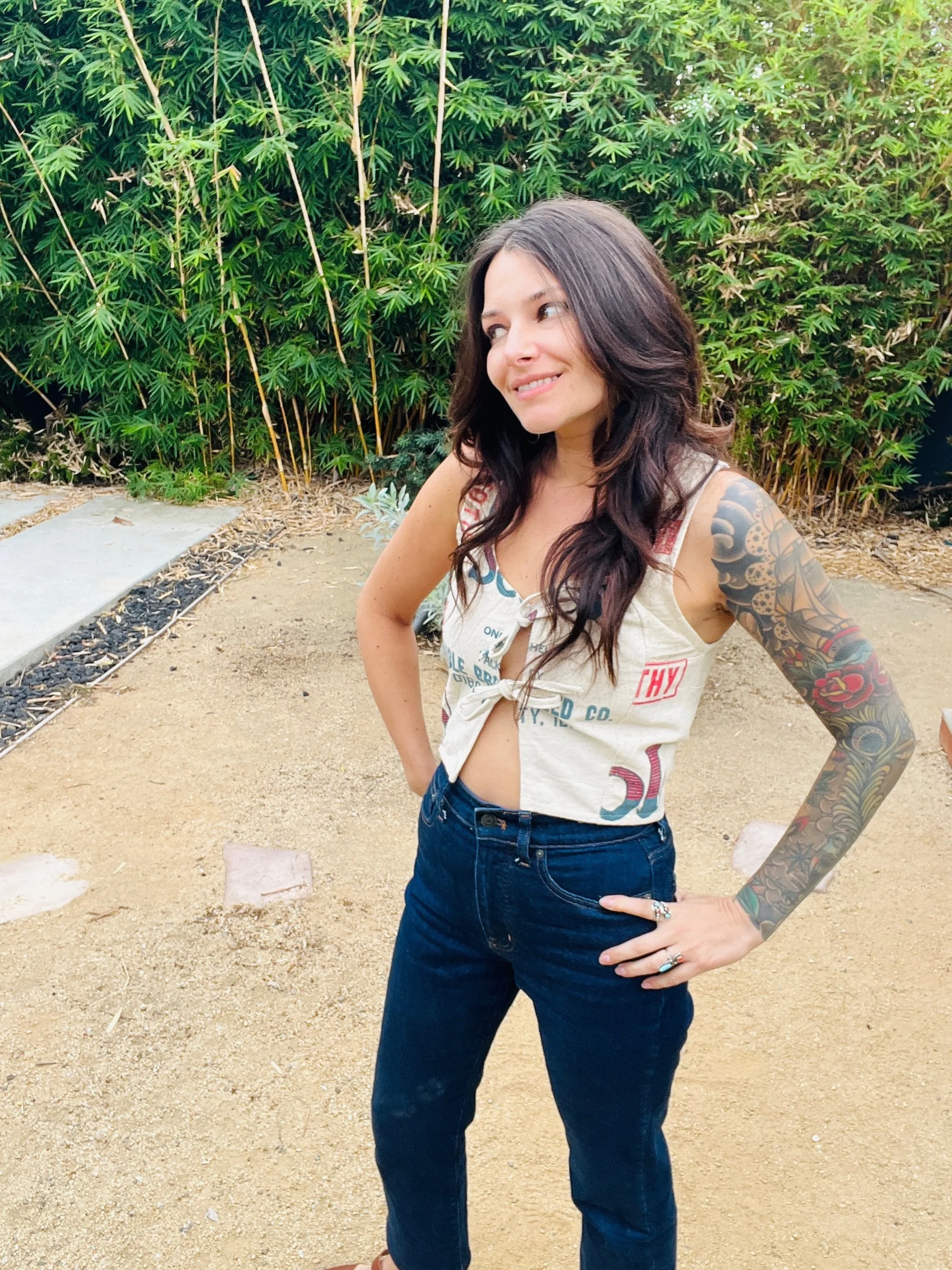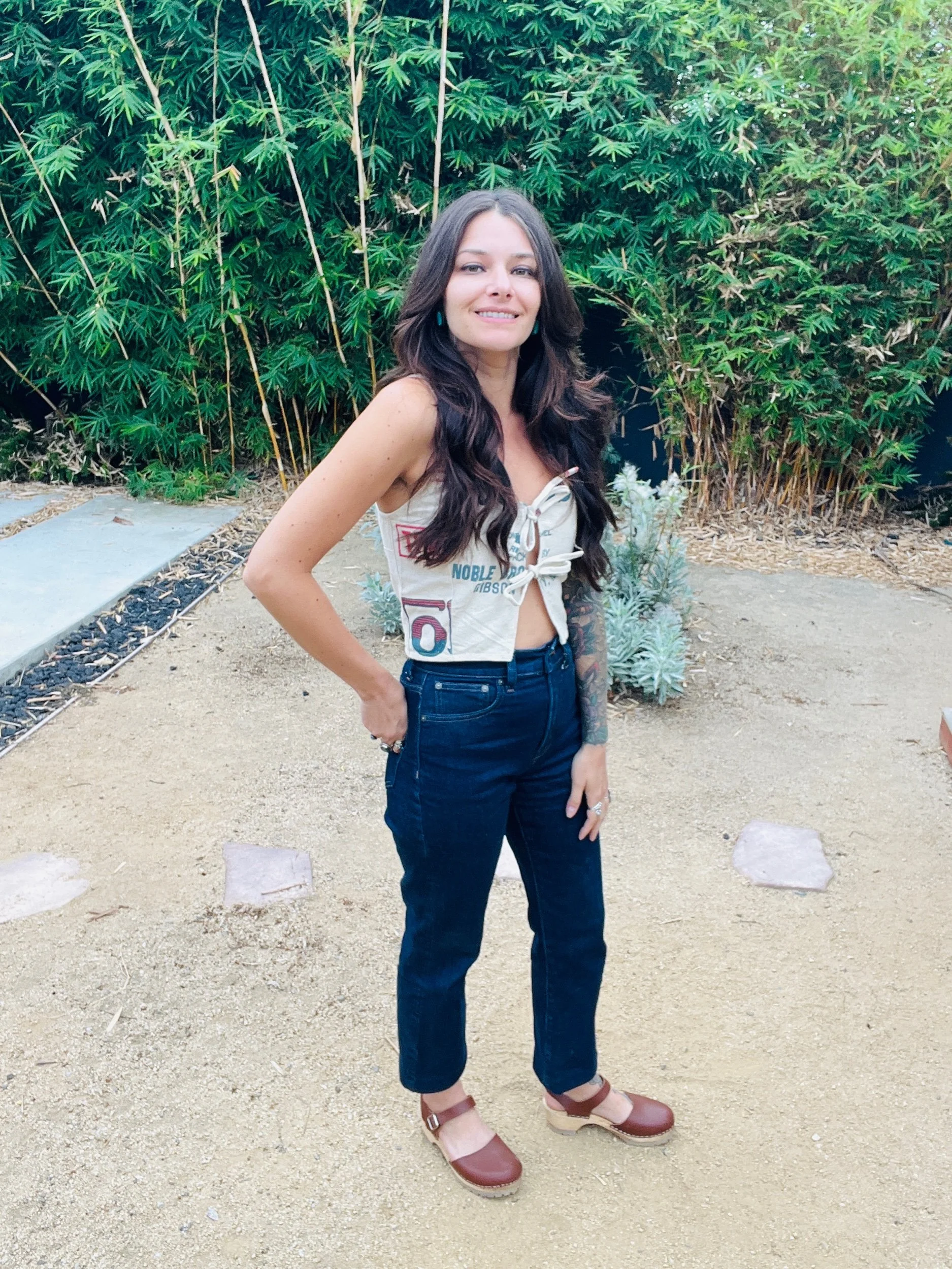 I used the Catalina Top pattern by Cayden Naughton to create this look. Her patterns are incredible if you want to sew the cutest top you’ve ever seen!