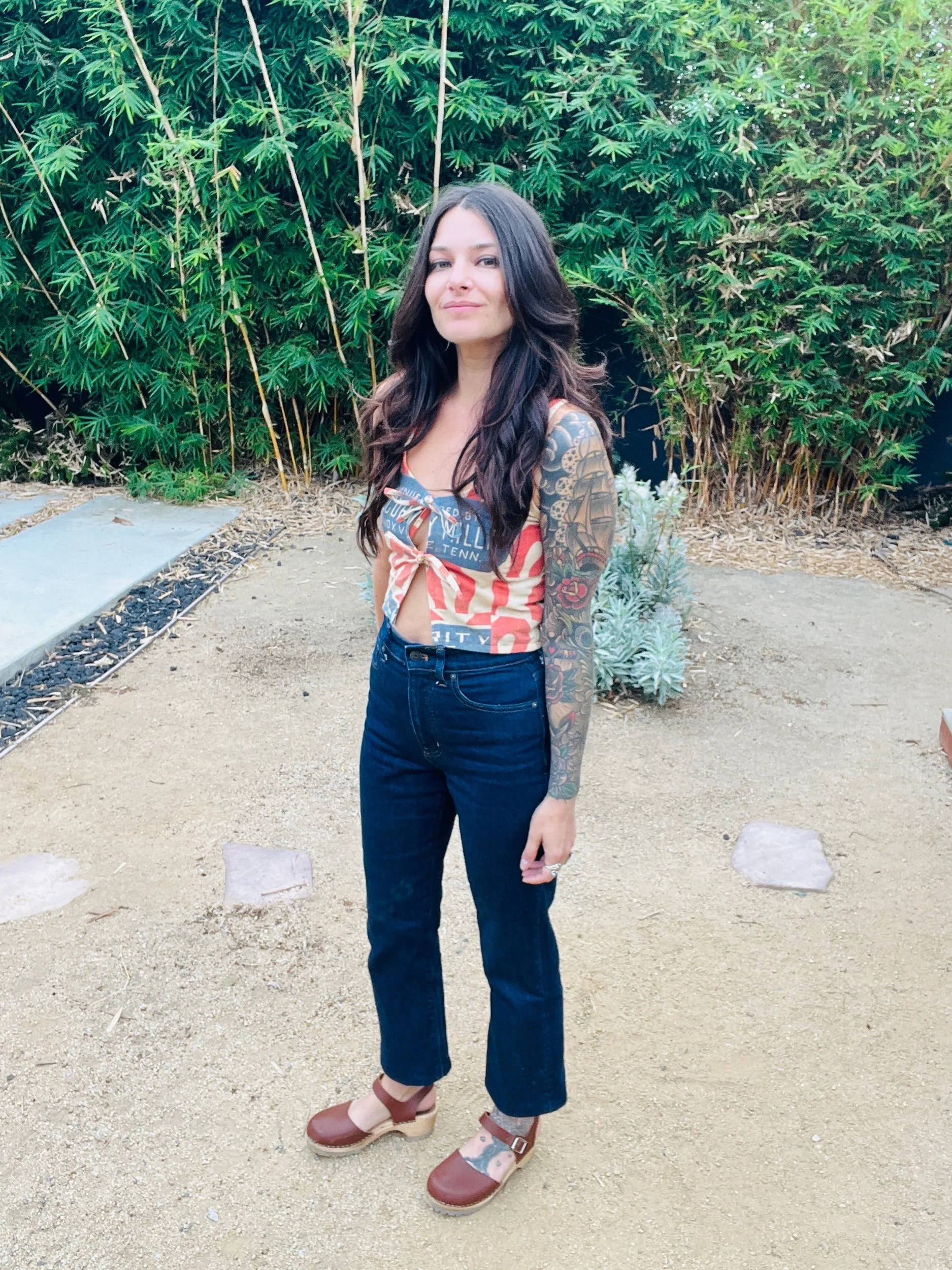 I used the Catalina Top pattern by Cayden Naughton to create this look. Her patterns are incredible if you want to sew the cutest top you’ve ever seen!