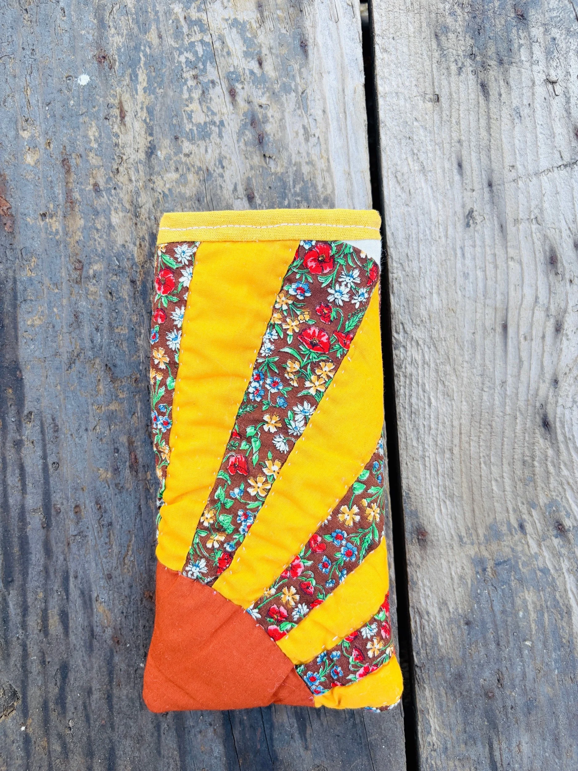 Protect your eyewear in style with our Handmade Vintage Quilt Sunglasses Case. Crafted from carefully selected vintage quilt fabric, each case showcases a unique patchwork design, ensuring that no two are alike.