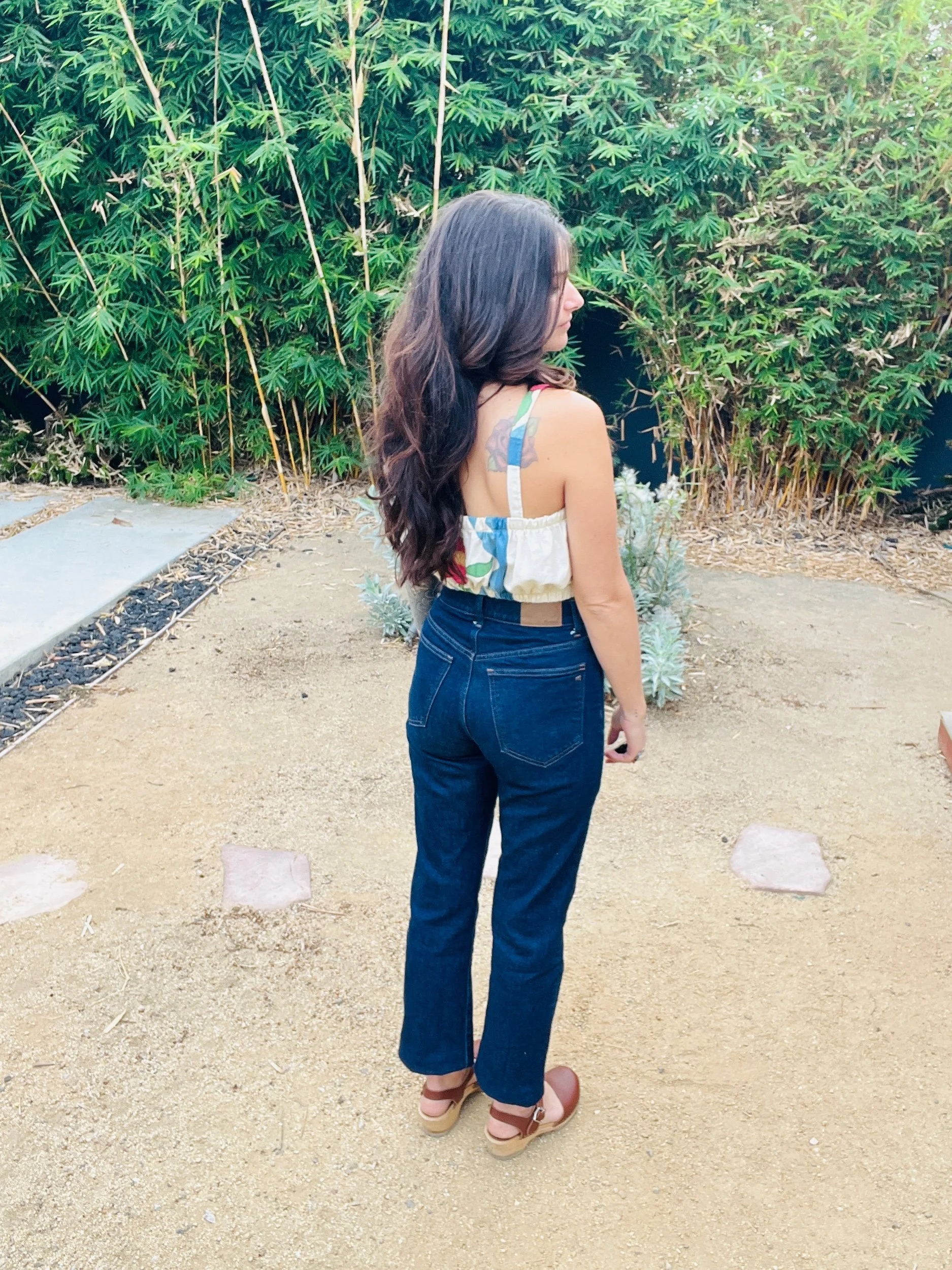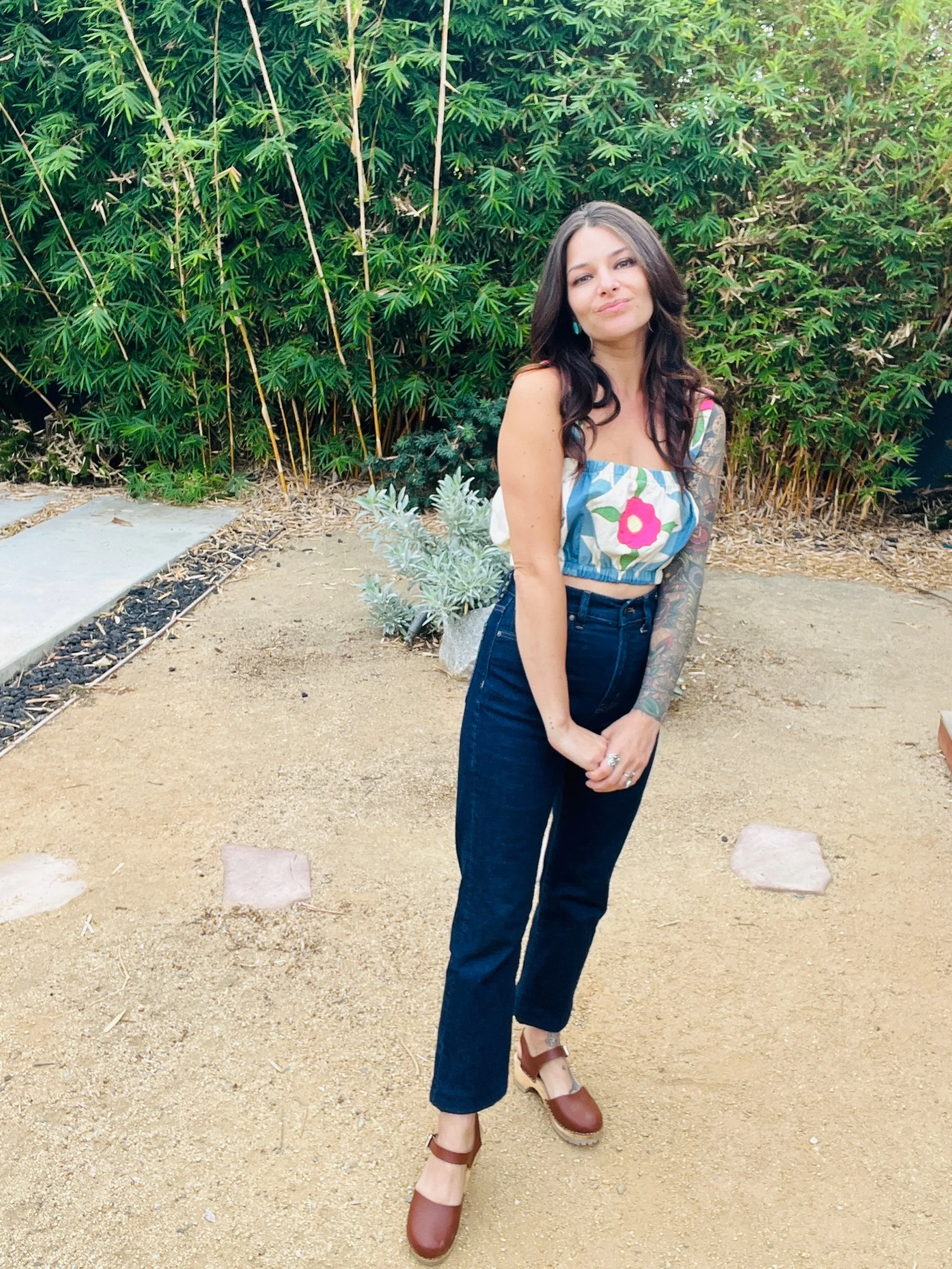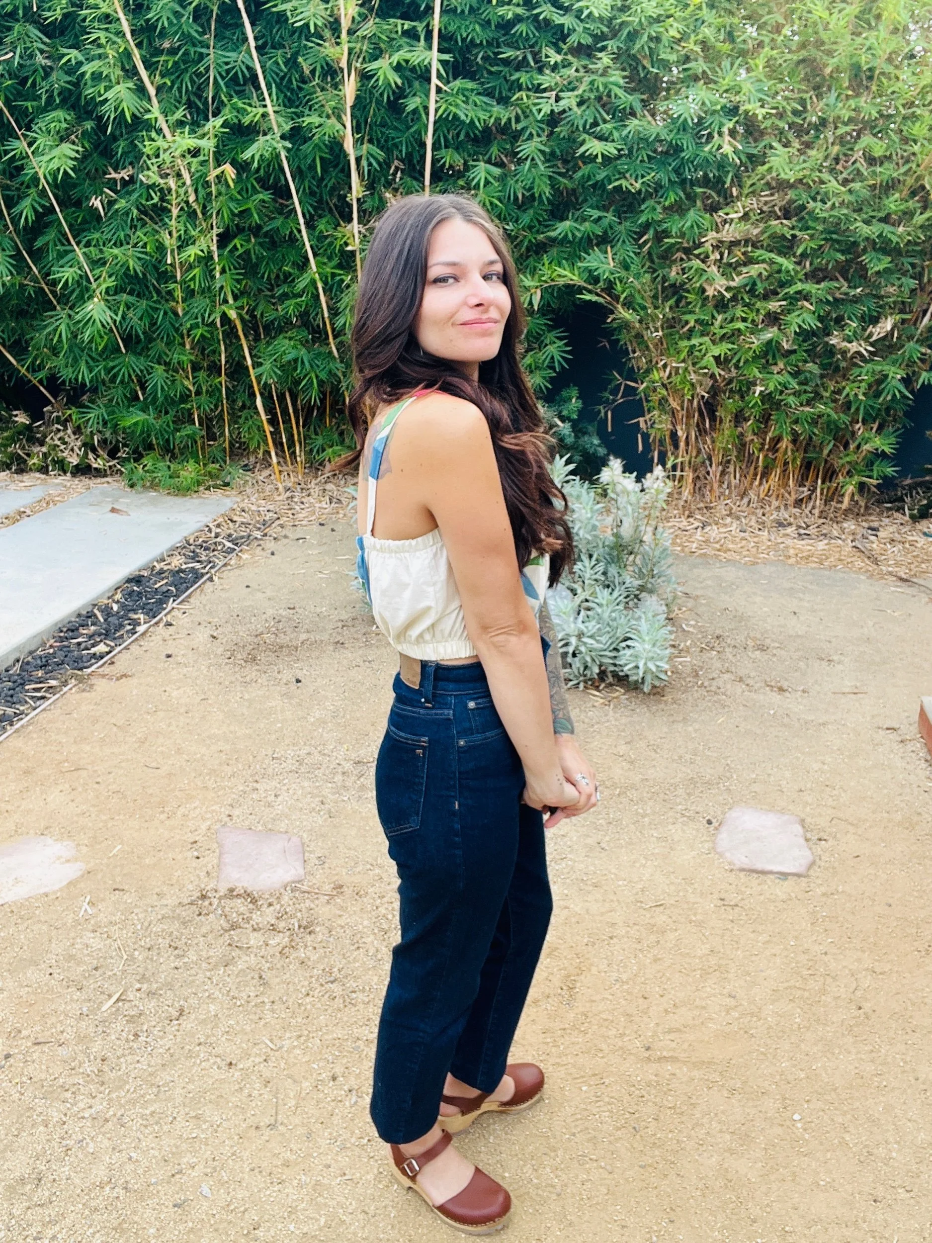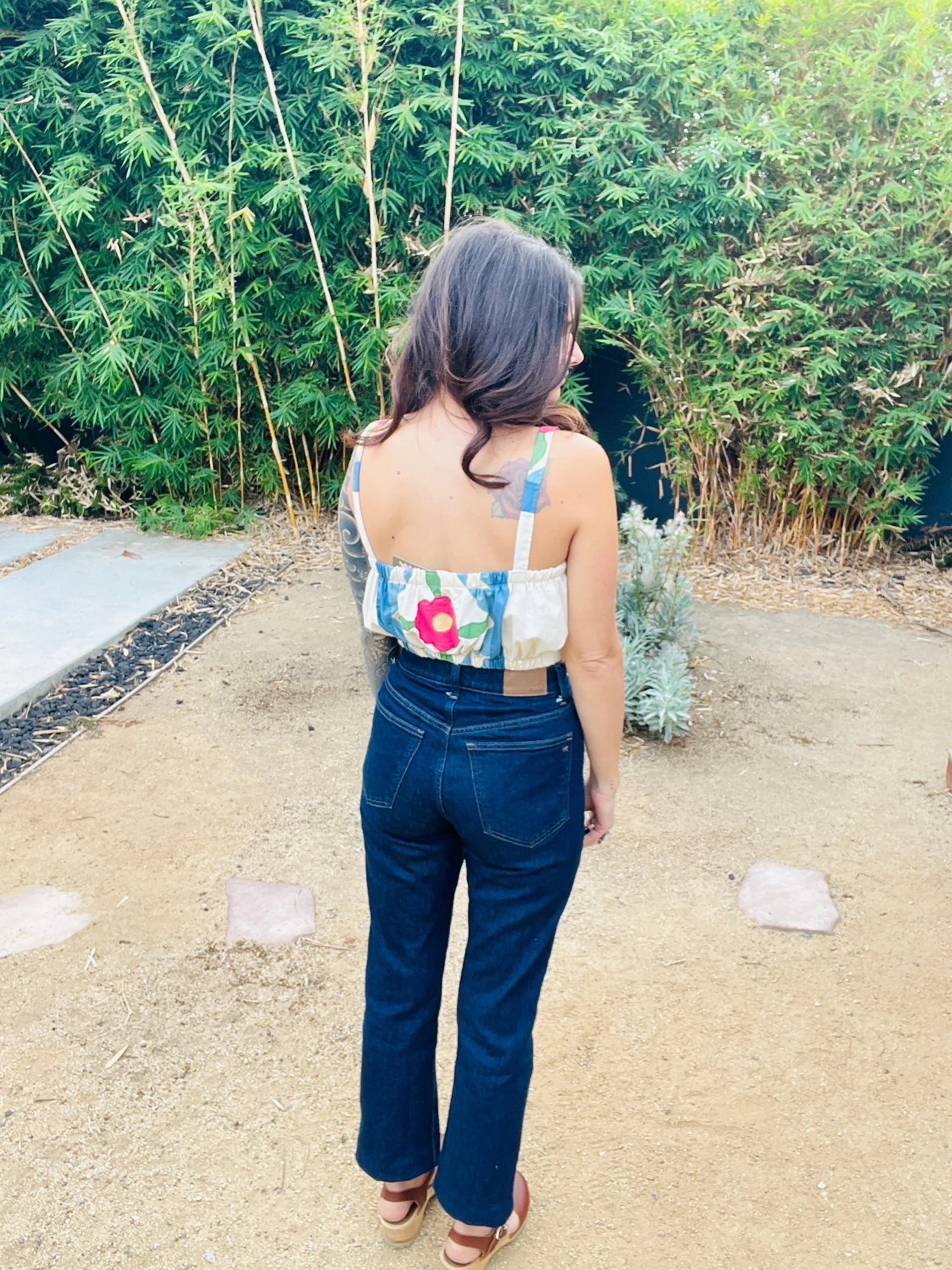 This vintage quilt top is handmade by me from a 1960’s patchwork quilt top. This is truly a unique piece. I’m between a Small and Medium and this is how it fits on me. it lands right above my belly button so something high waisted with this top. I think it sits perfectly with high waisted jeans or a high waisted skirt!