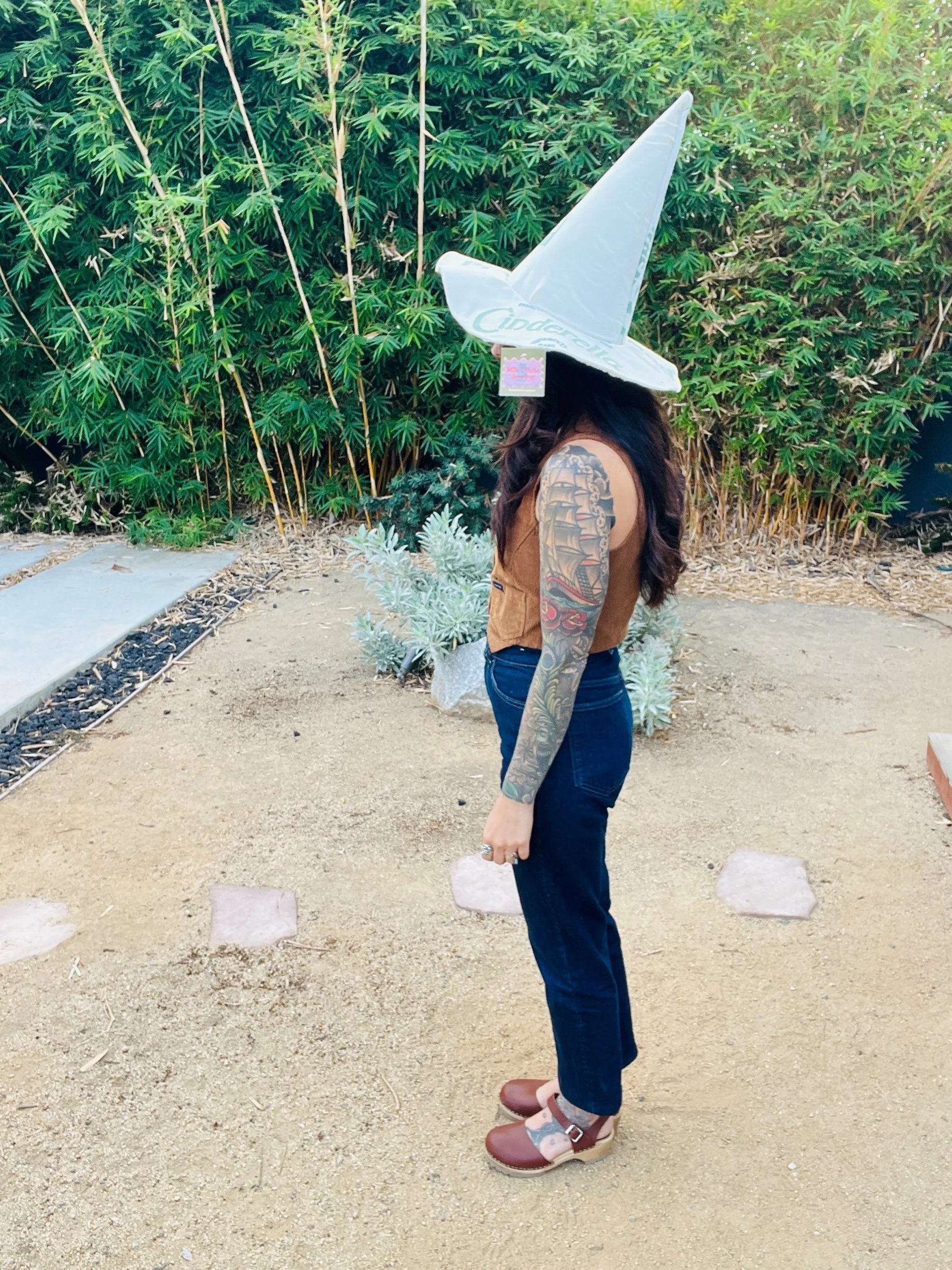 Why settle for a boring black hat when you can serve patchwork realness? This quilted witch hat says, yes, I cast spells… but I also quilt on Tuesdays. It’s bold, it’s cozy, and it’s proof you can hex in comfort.