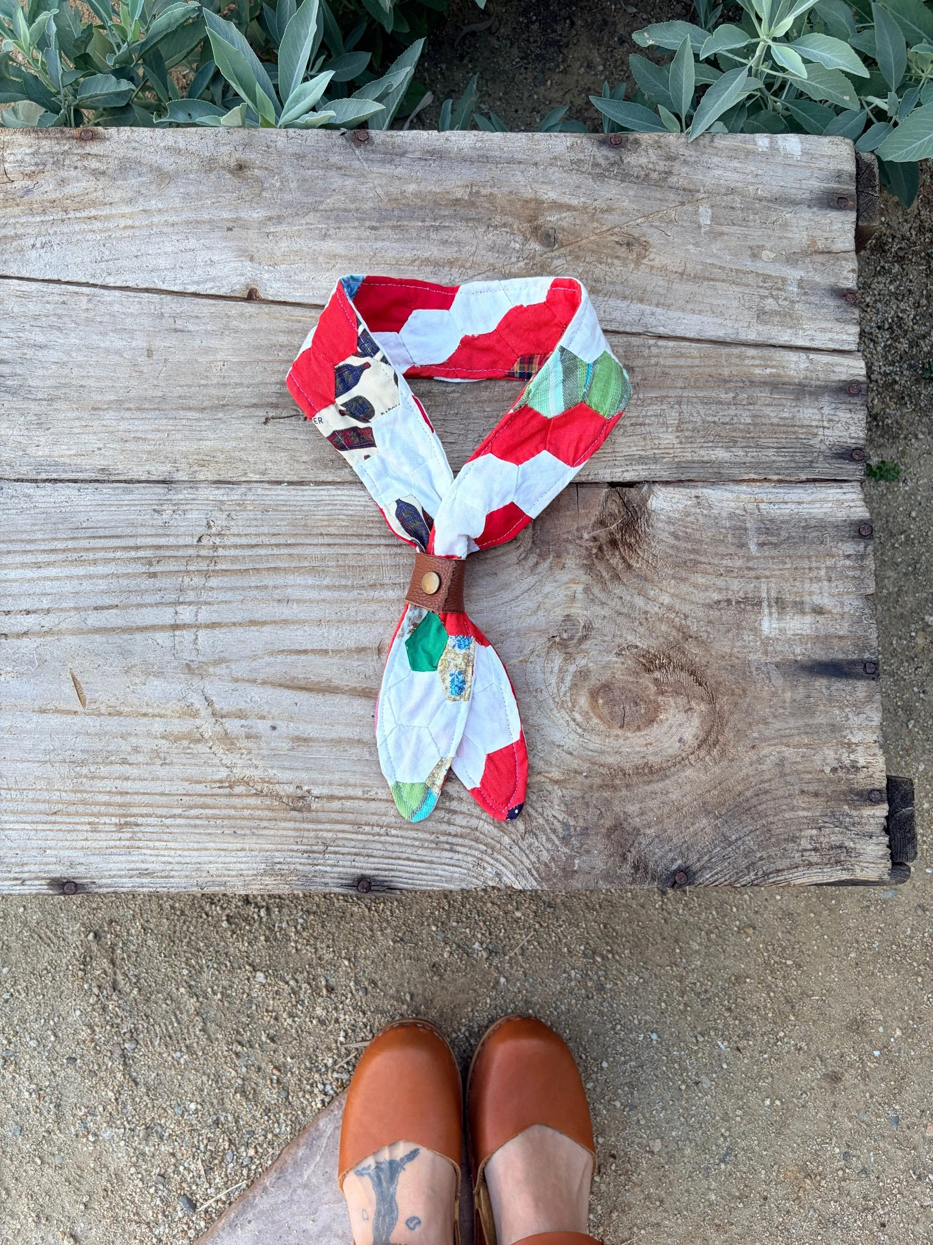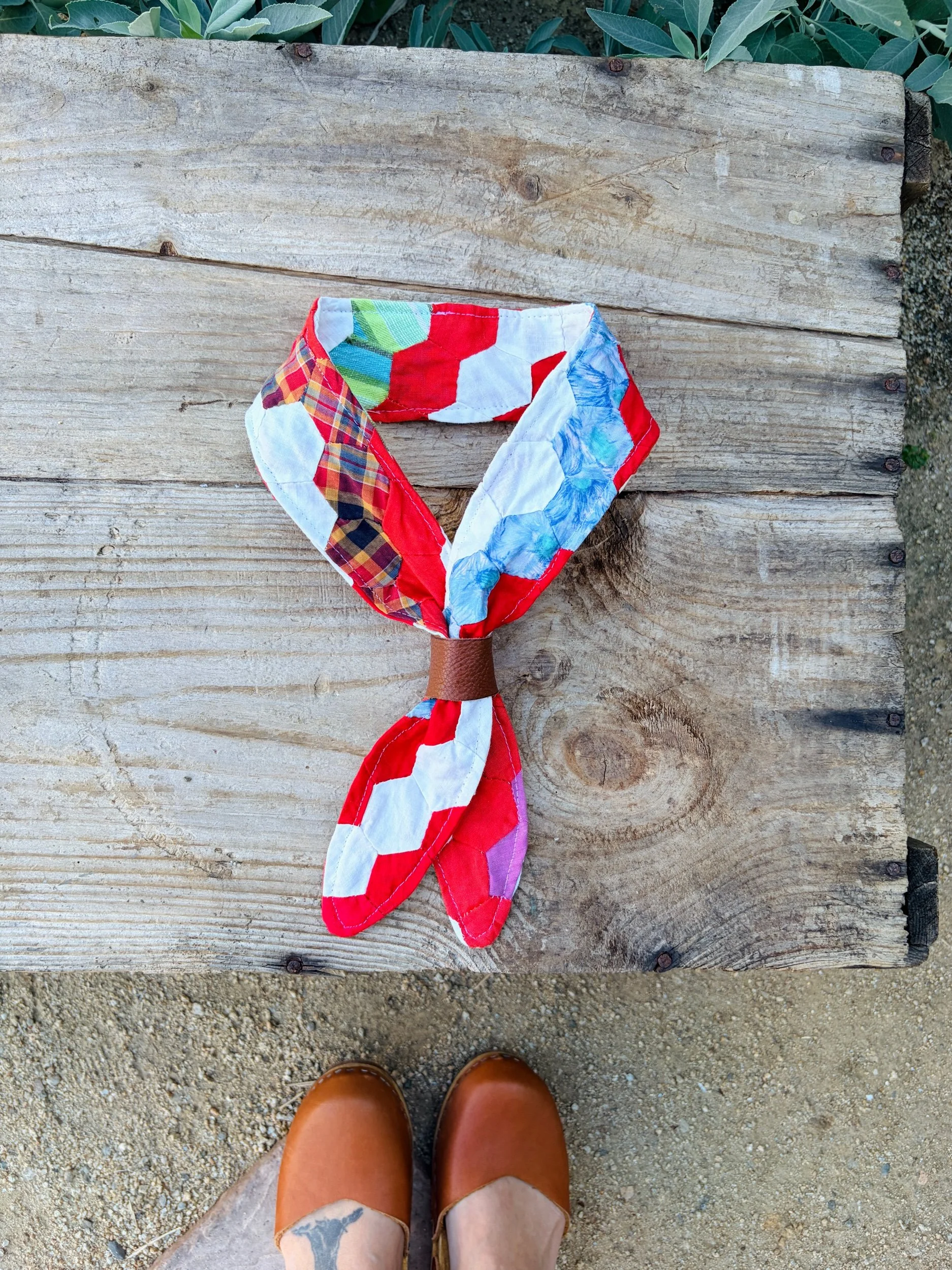 By using reclaimed vintage quilts, this bandana celebrates slow fashion and helps preserve textile history while reducing waste.