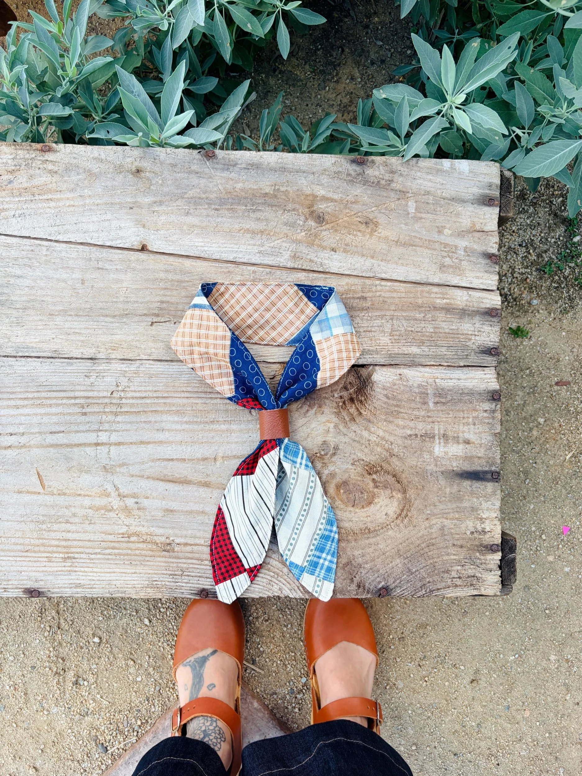 This handmade bandana is thoughtfully crafted from a reclaimed vintage quilt top, giving new life to beautiful, timeworn textiles. Each piece is truly one of a kind, showcasing unique patchwork, gentle fading, and the character that only vintage fabrics can offer.