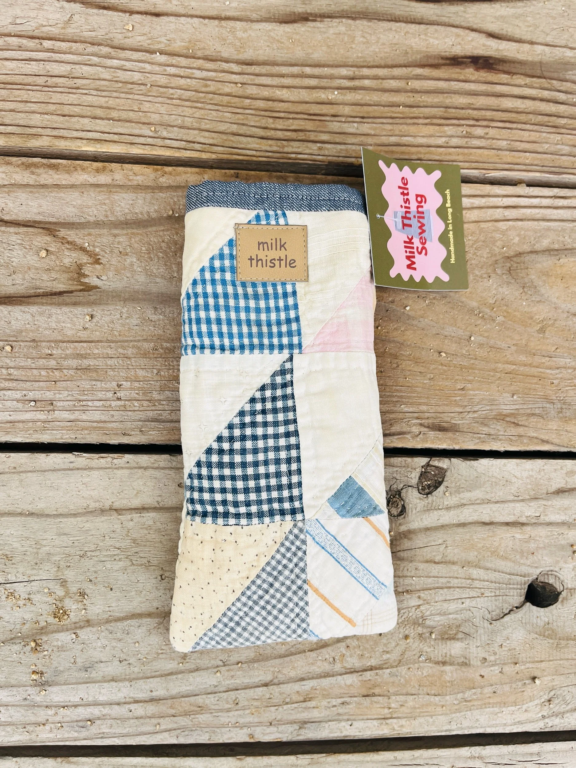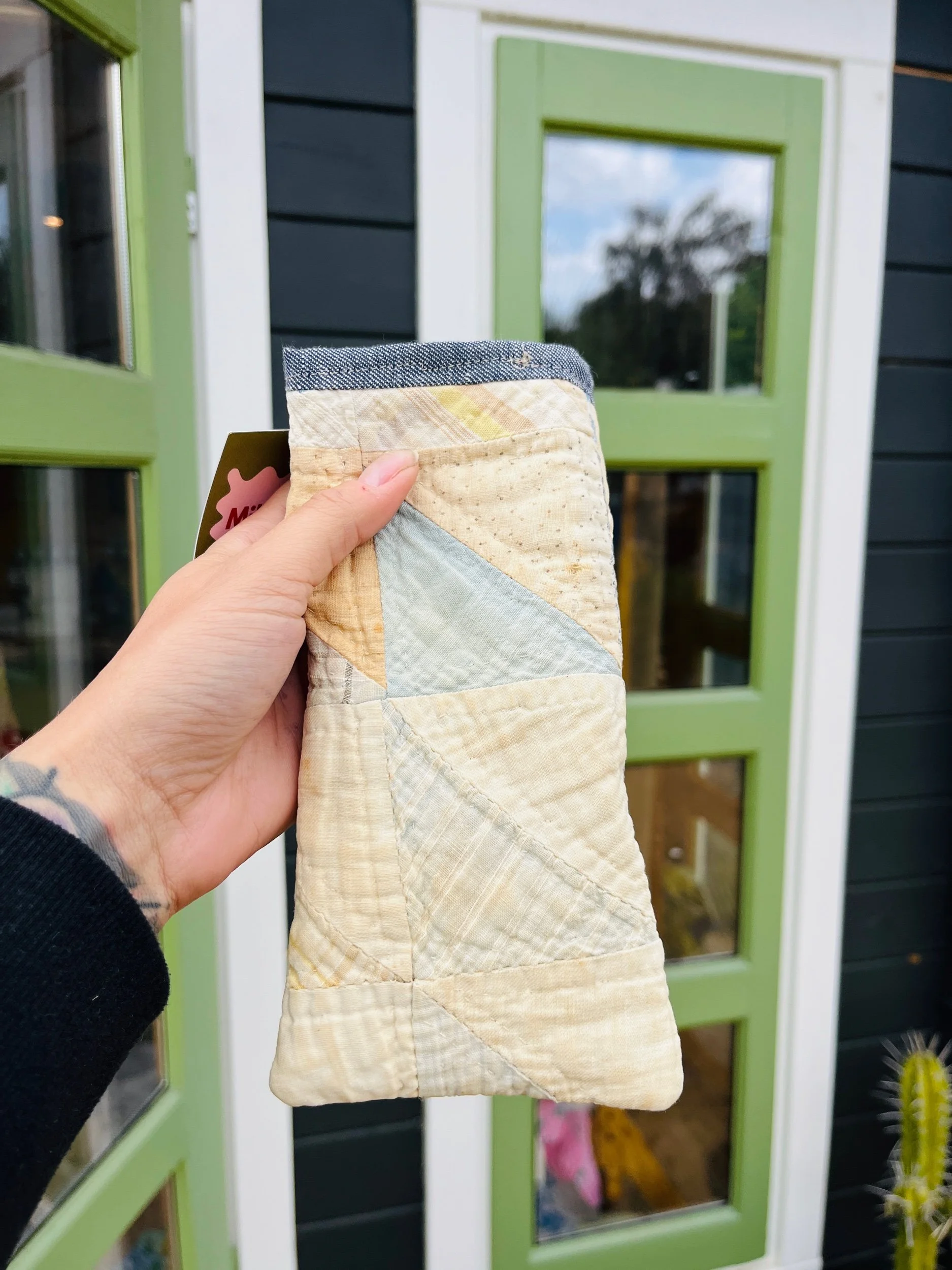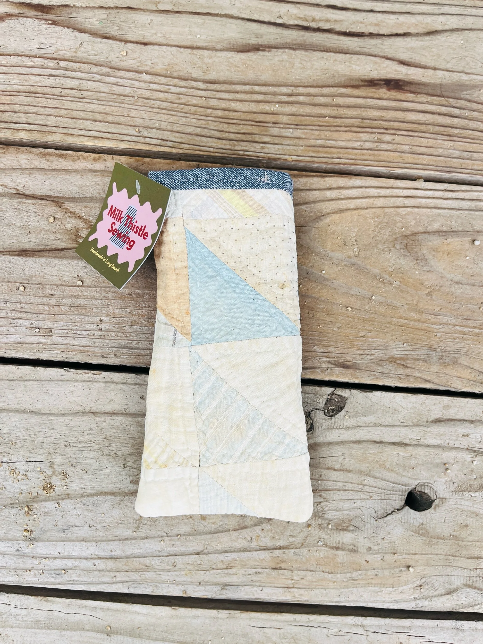 Protect your eyewear in style with our Handmade Vintage Quilt Sunglasses Case. Crafted from carefully selected vintage quilt fabric, each case showcases a unique patchwork design, ensuring that no two are alike.