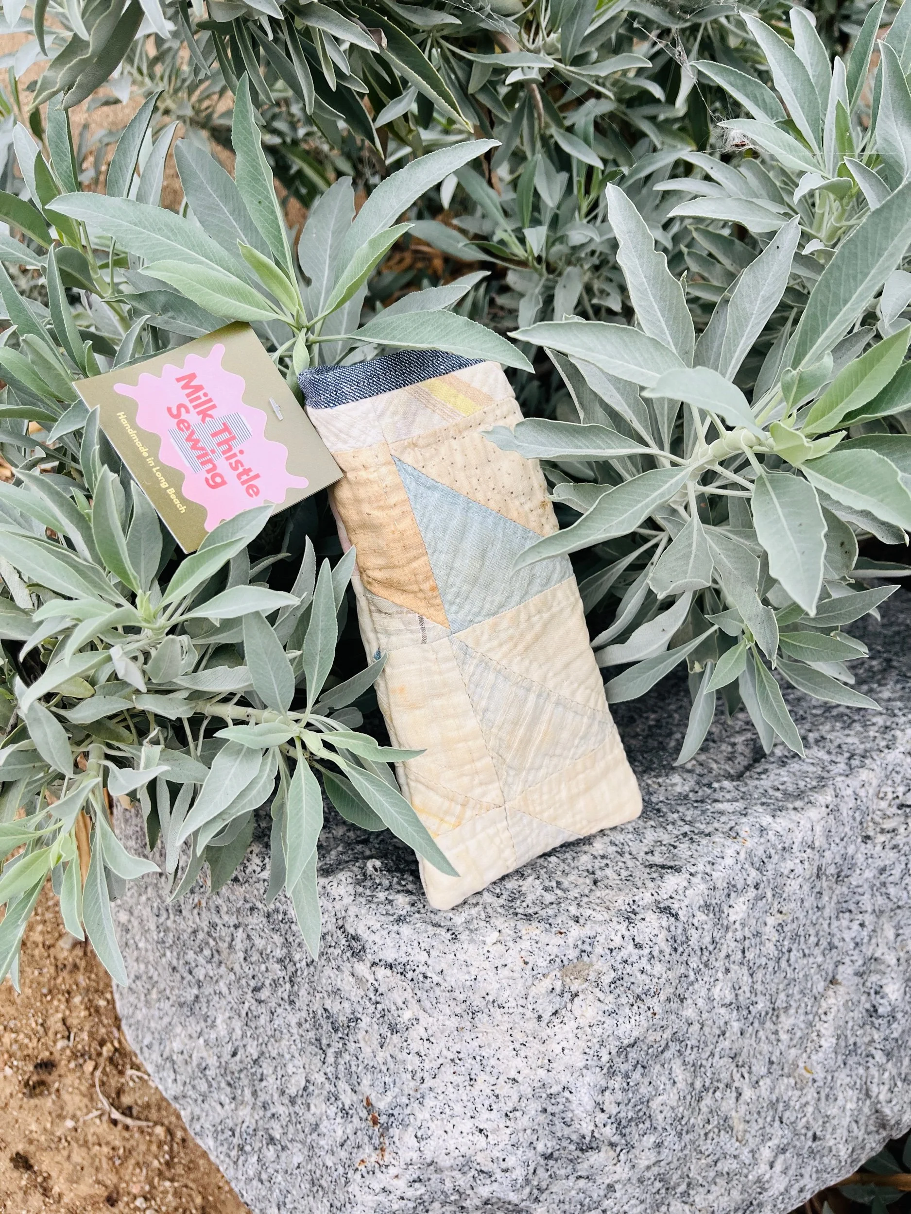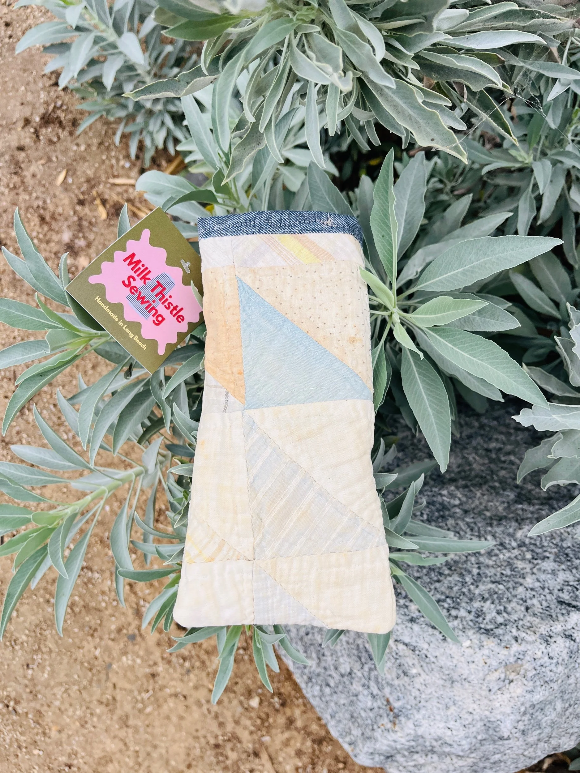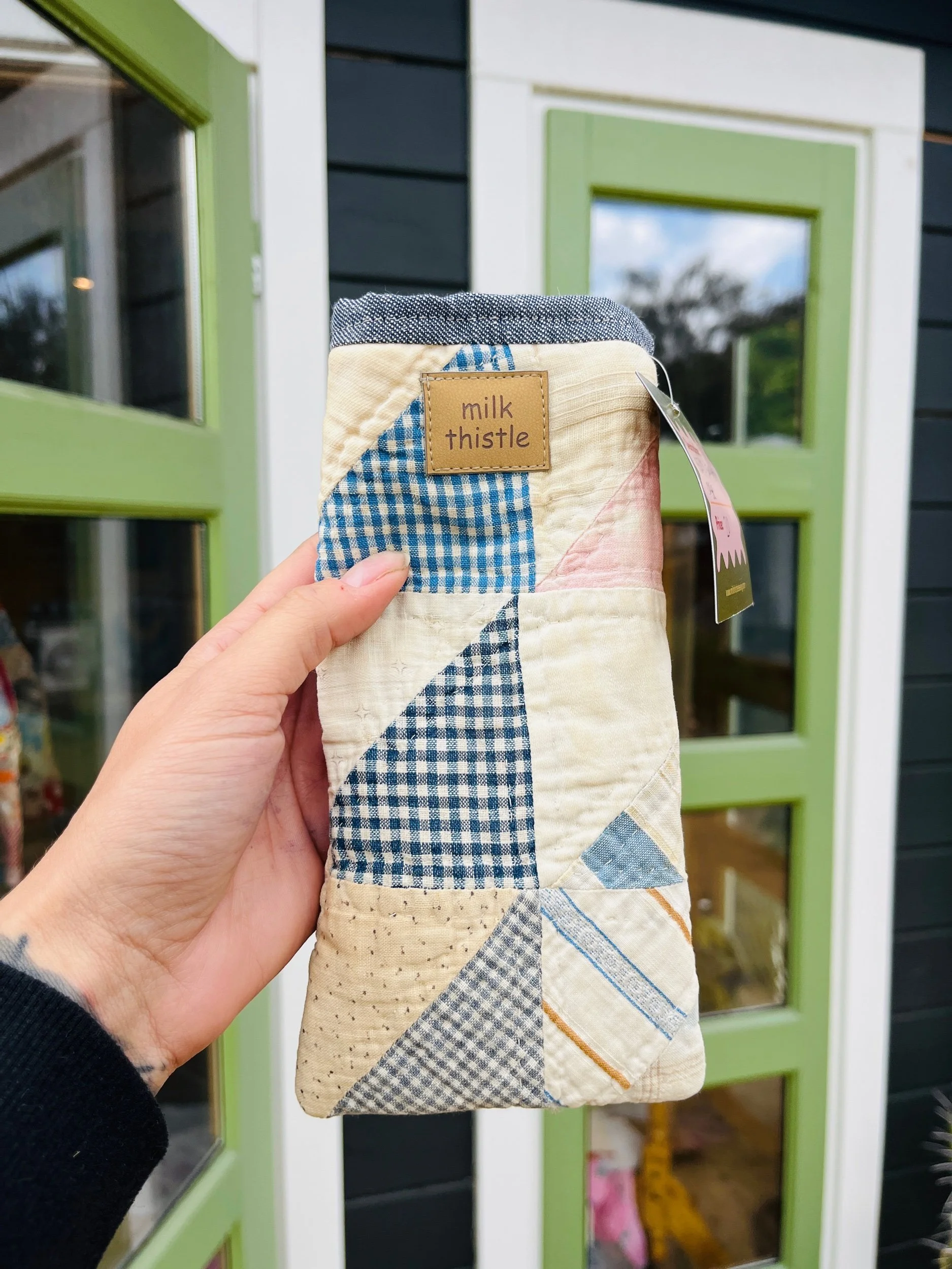 Protect your eyewear in style with our Handmade Vintage Quilt Sunglasses Case. Crafted from carefully selected vintage quilt fabric, each case showcases a unique patchwork design, ensuring that no two are alike.