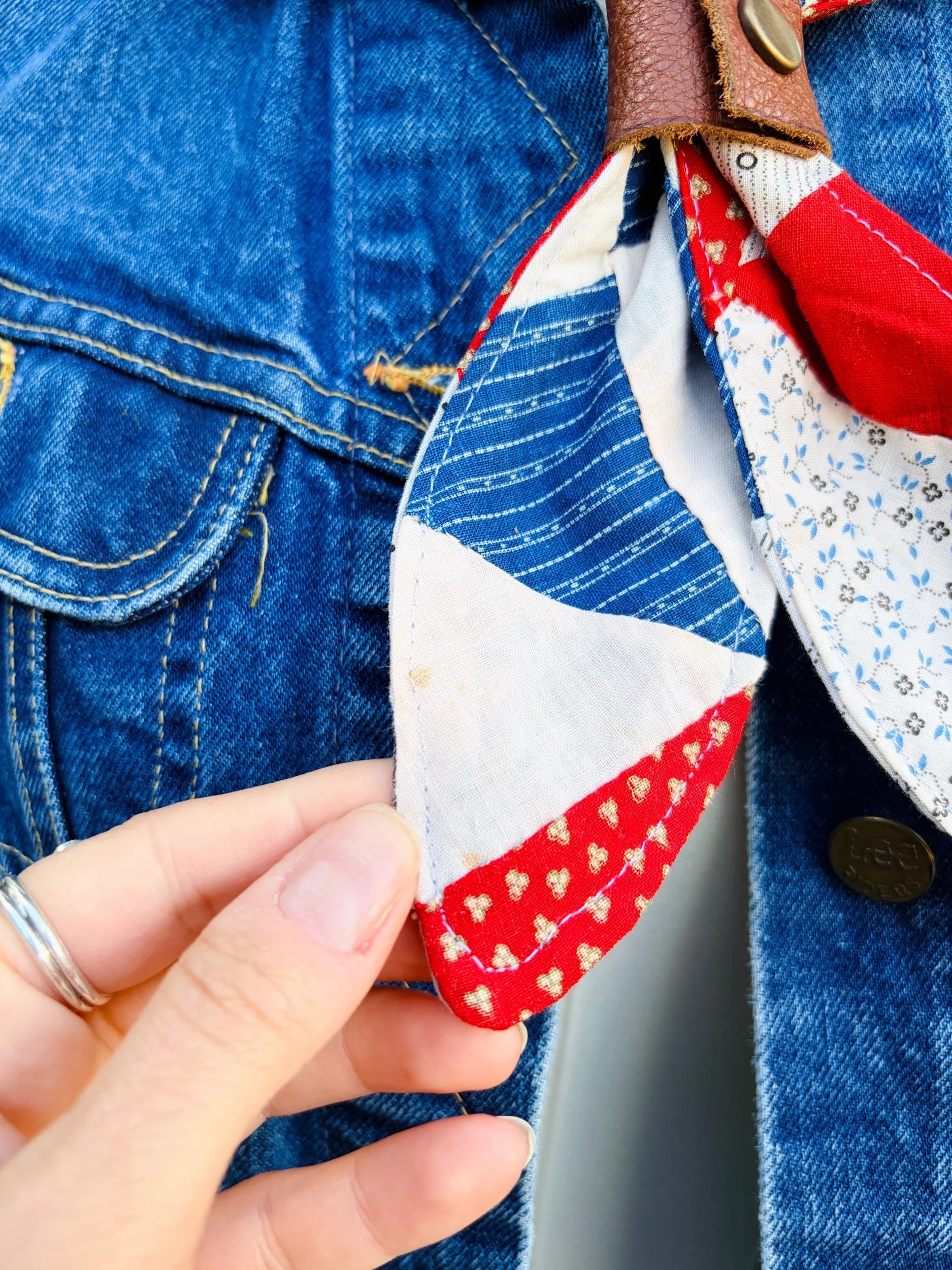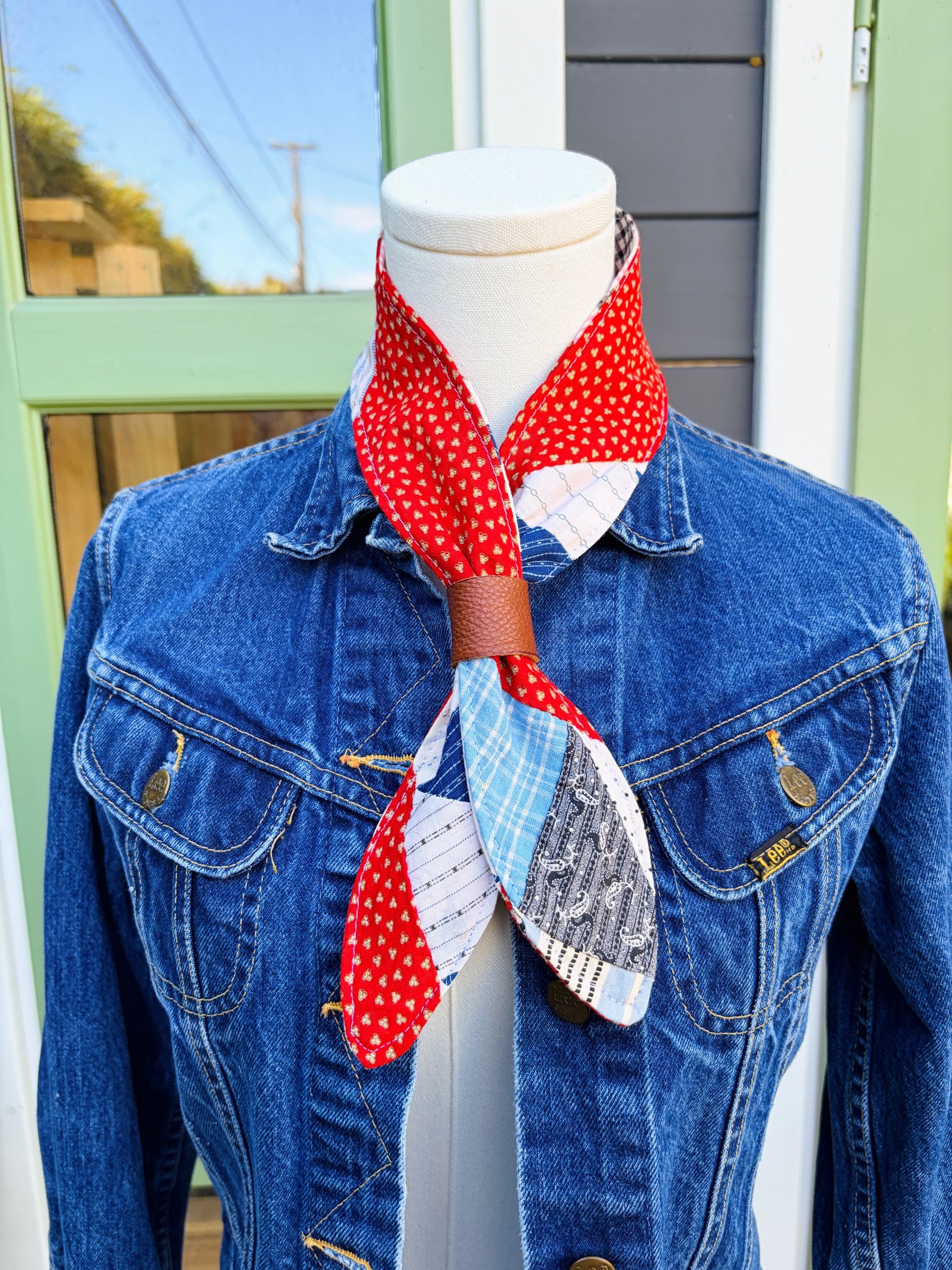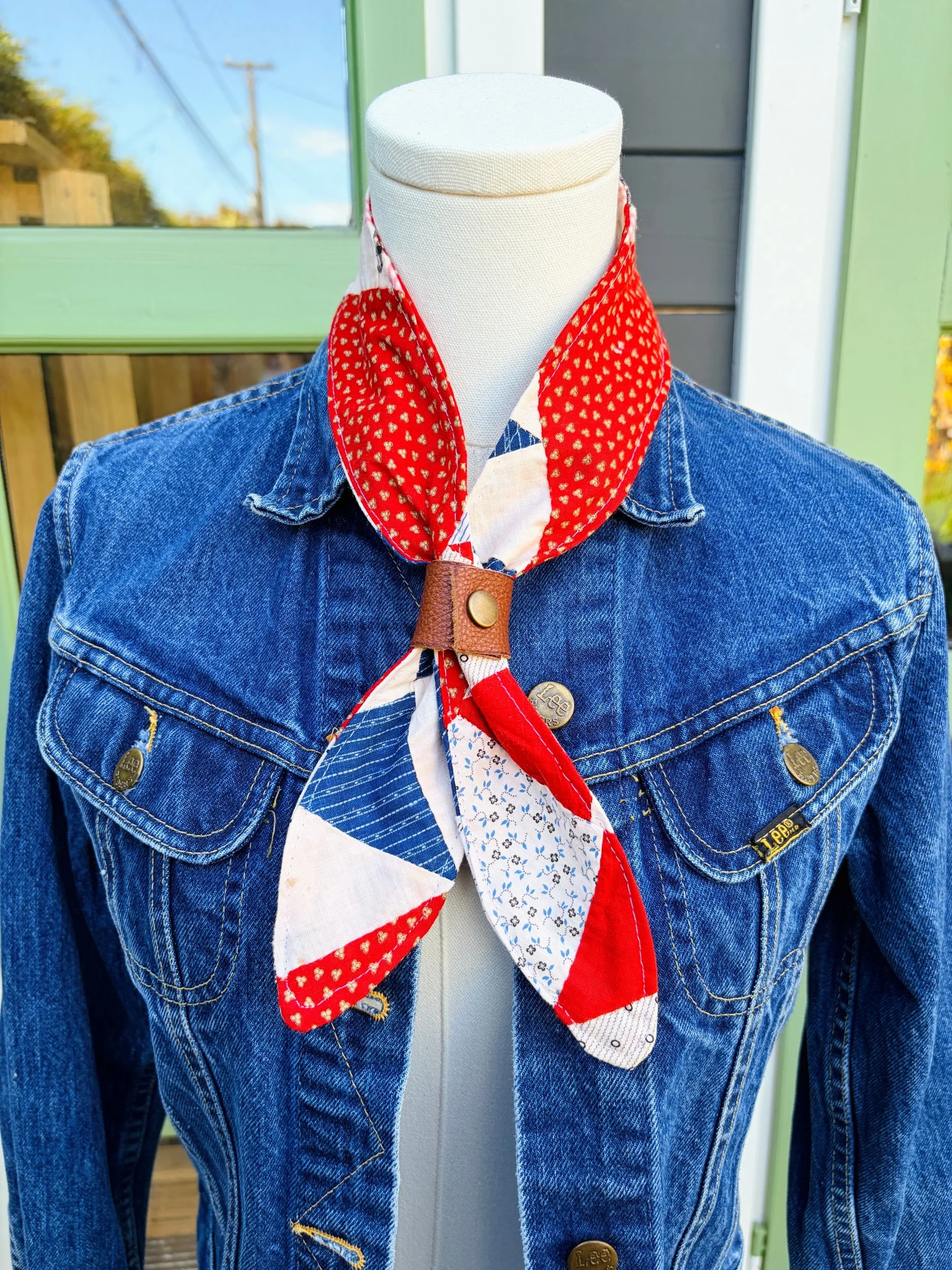 By using reclaimed vintage quilts, this bandana celebrates slow fashion and helps preserve textile history while reducing waste.